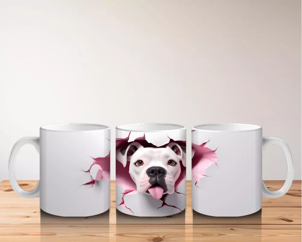 Çatlak Pembe Zeminden Bakan Sevimli Beyaz Köpek – Baskılı Kahve Kupası