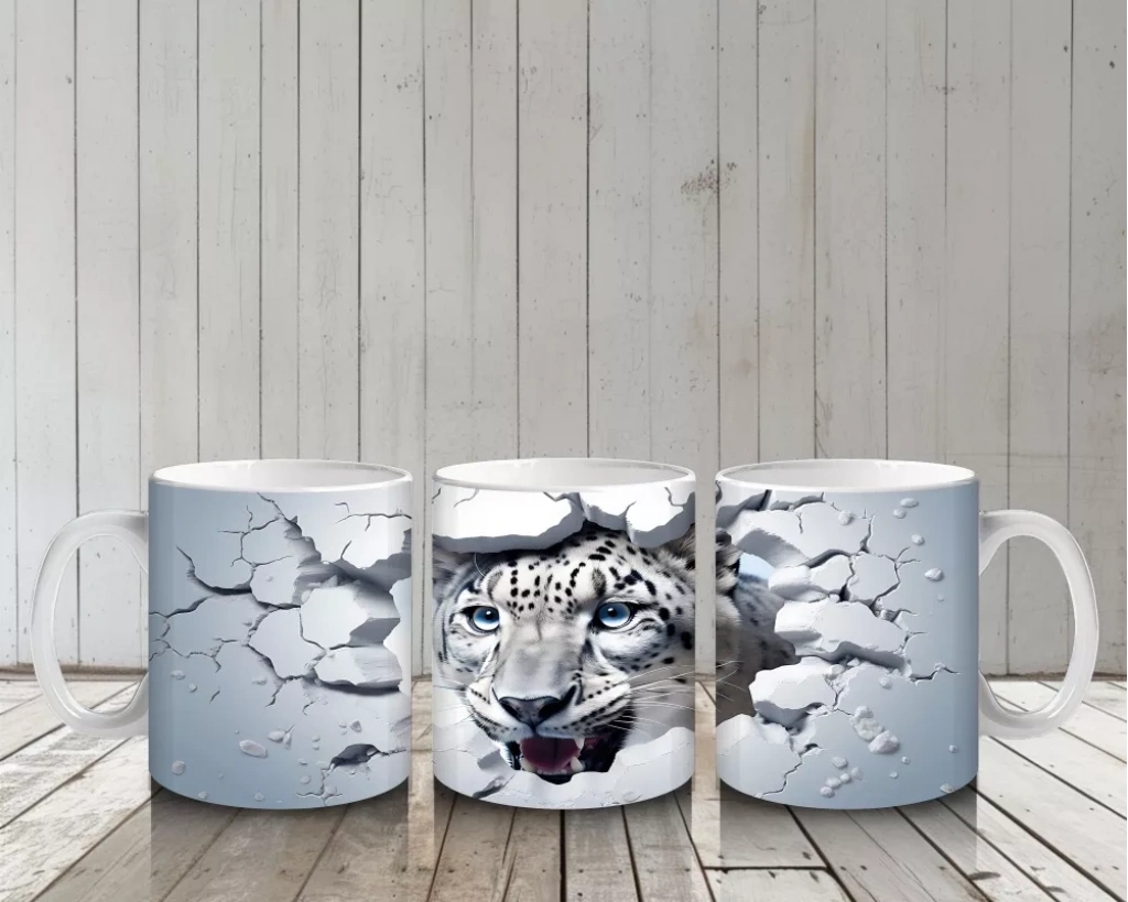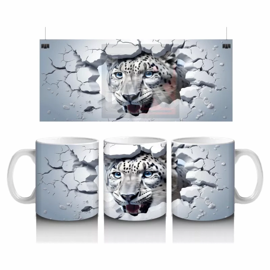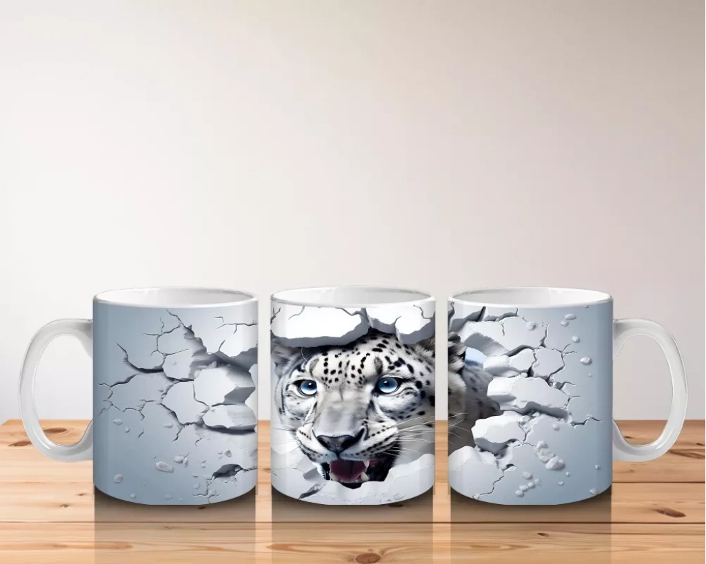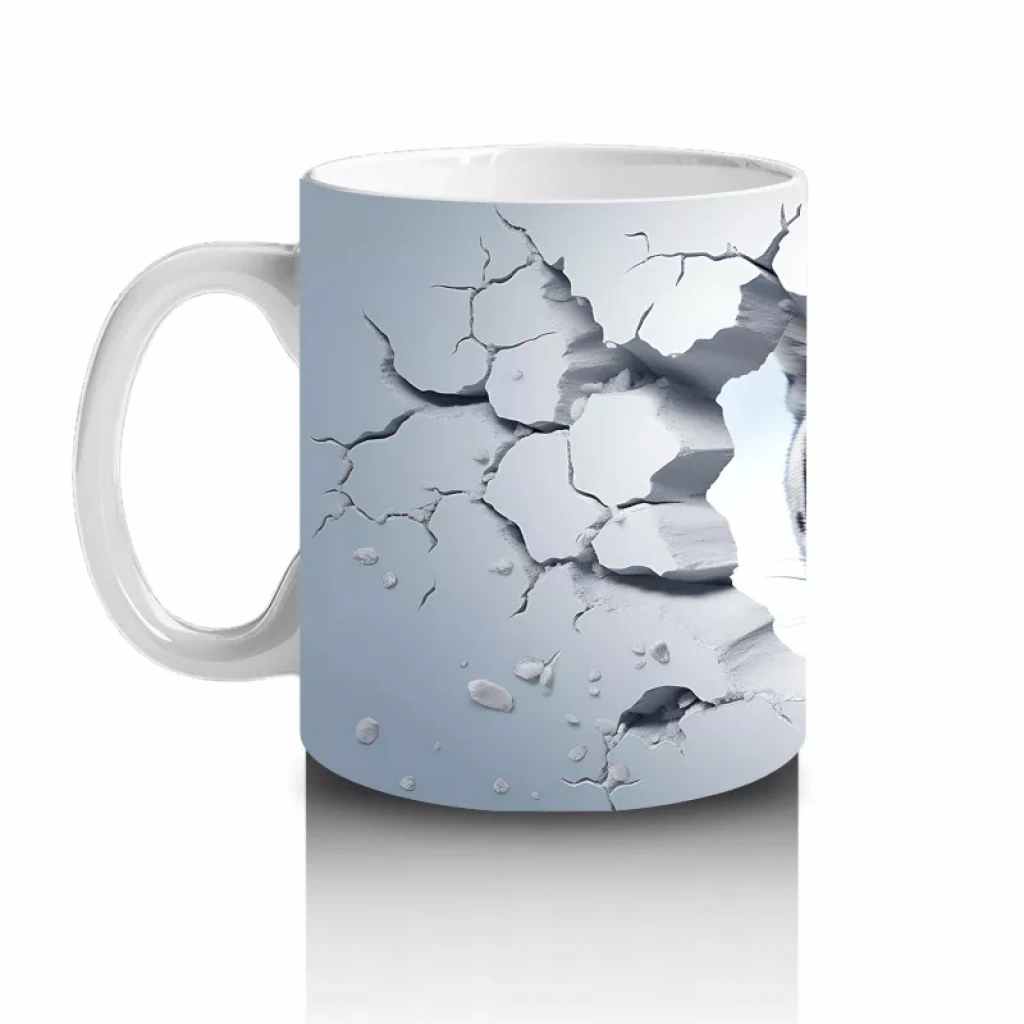 Çatlamış zemin arasından dikkatle bakan kaplan figürü, gücü ve gizemi bir arada yansıtıyor. Vahşi doğanın etkileyici duruşunu sevenler için cesur ve karizmatik bir kupa tasarımı.