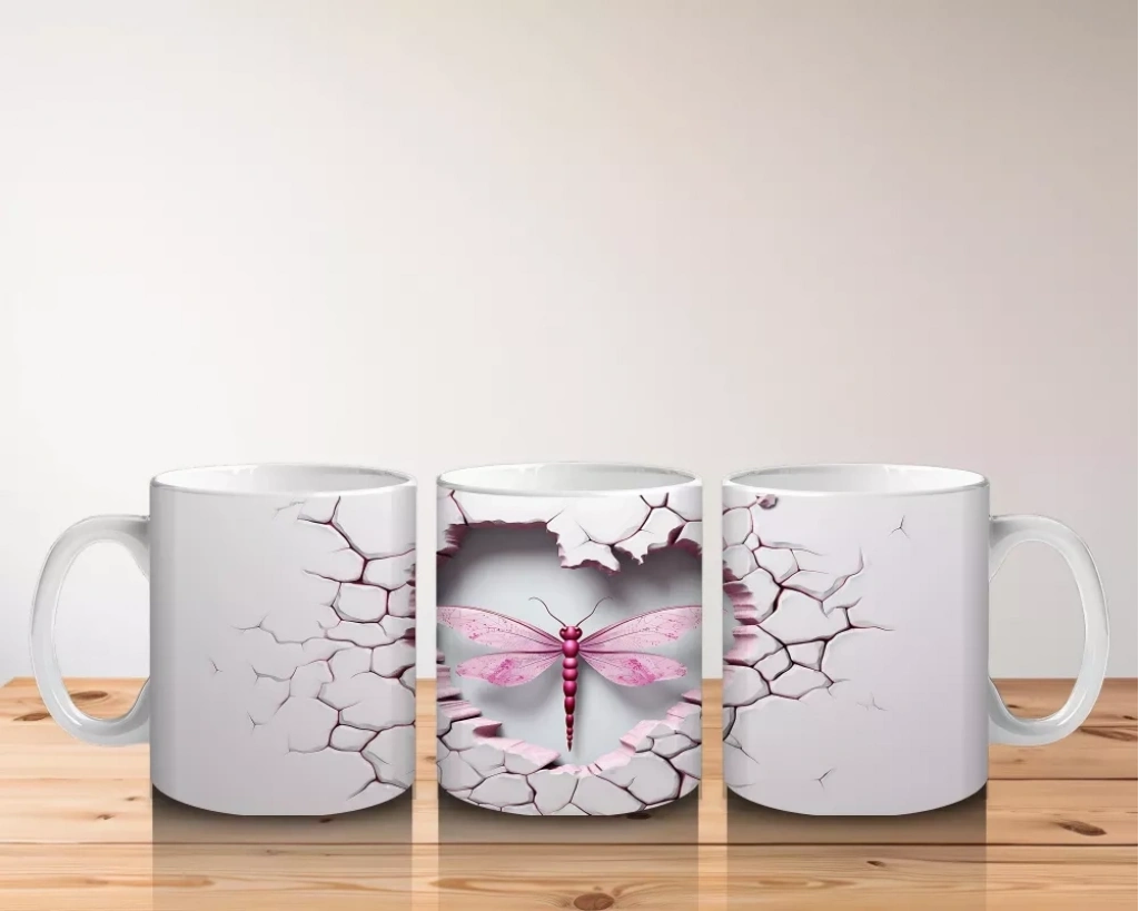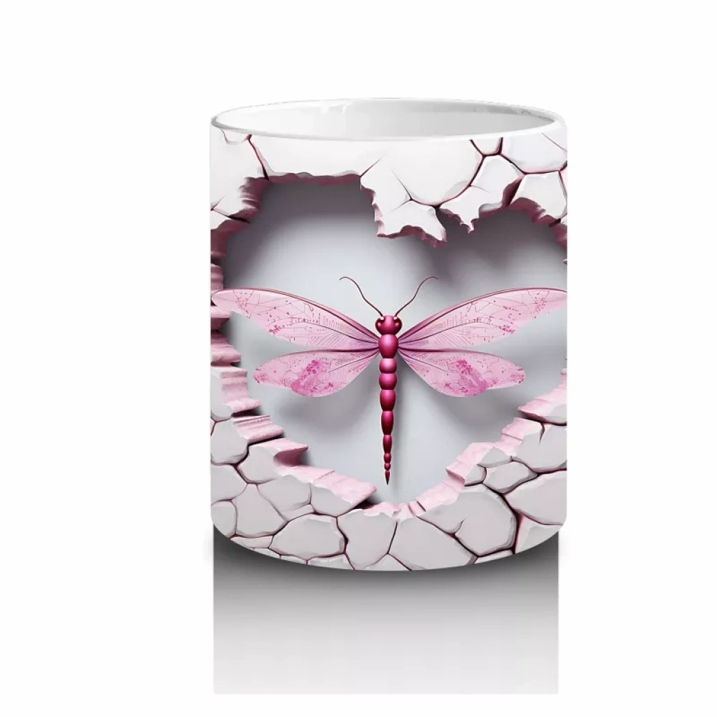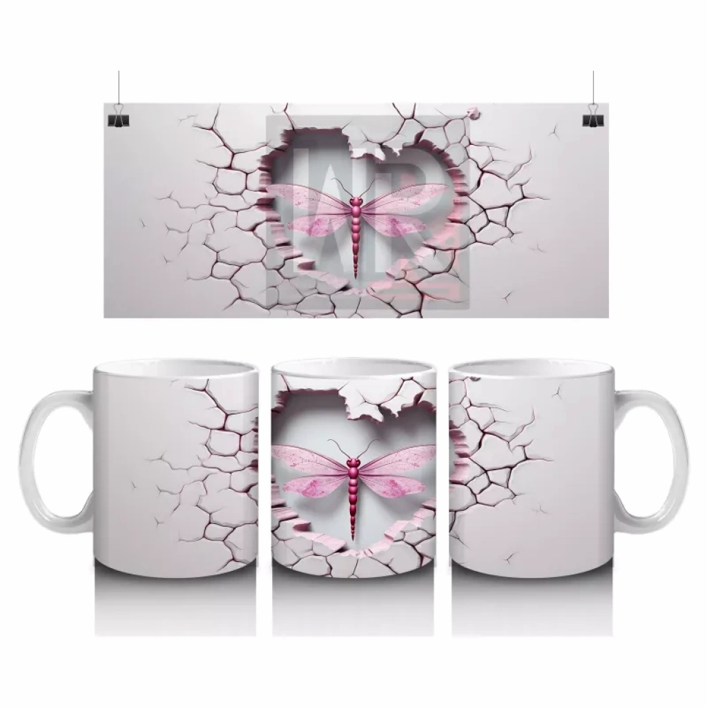 Çatlak Zemin Üzerinde Pembe Kanatlı Yusufçuk – Baskılı Kahve Kupası