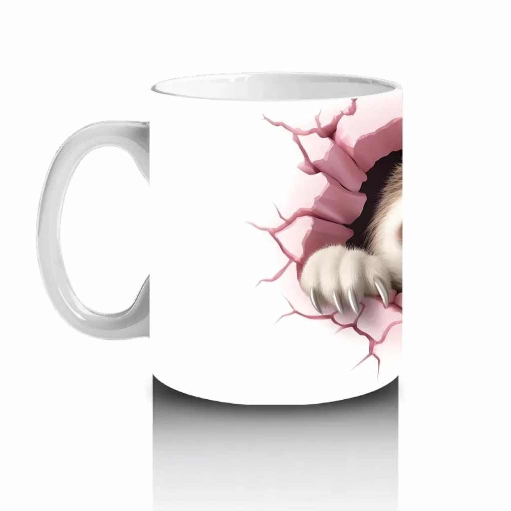 Çatlak Zeminden Bakan Sevimli Tembel Hayvan Figürü – Baskılı Kahve Kupası