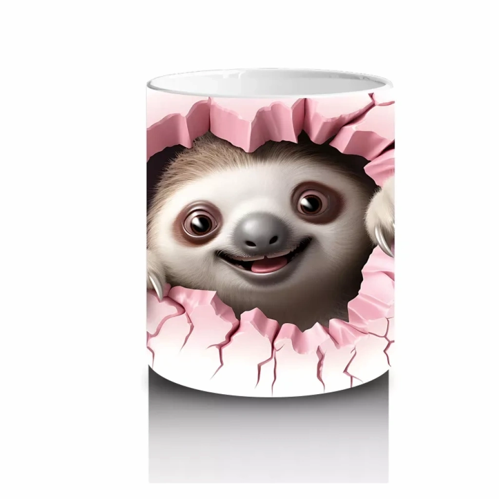 Çatlak zeminden meraklı gözlerle bakan sevimli tembel hayvan figürü, sıcak ve neşeli bir atmosfer yaratıyor. Doğa ve sevimlilik temasını sevenler için özel bir tasarım.