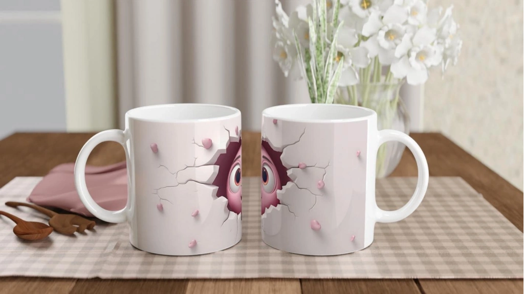 Çatlaktan Bakan Karikatürik Yüzlü Sevimli Canlı Temalı Baskılı Kupa Bardak, sade arka planı ve minik kalp detaylarıyla neşeli bir tasarım sunuyor. Mizahı ve sevimliliği bir arada sevenler için keyifli bir seçim.