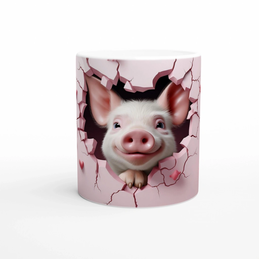 Çatlaktan Bakan Sevimli Domuz Temalı Baskılı Kupa Bardak, pembe çatlak zemin ve kalp detaylarıyla eğlenceli ve sıcak bir atmosfer oluşturuyor. Gülümseten tasarımları sevenler için özel bir parça.