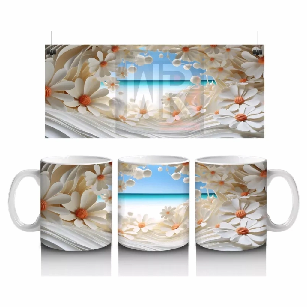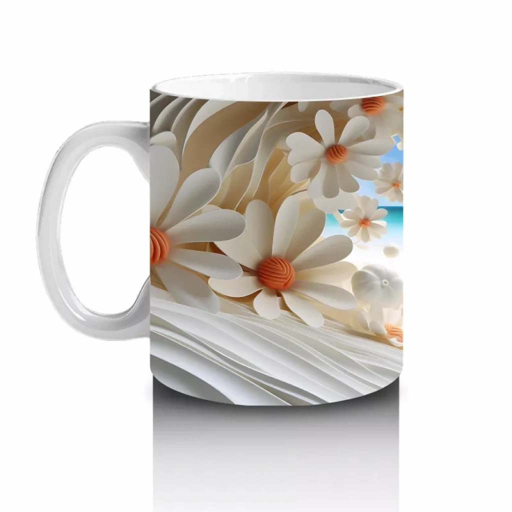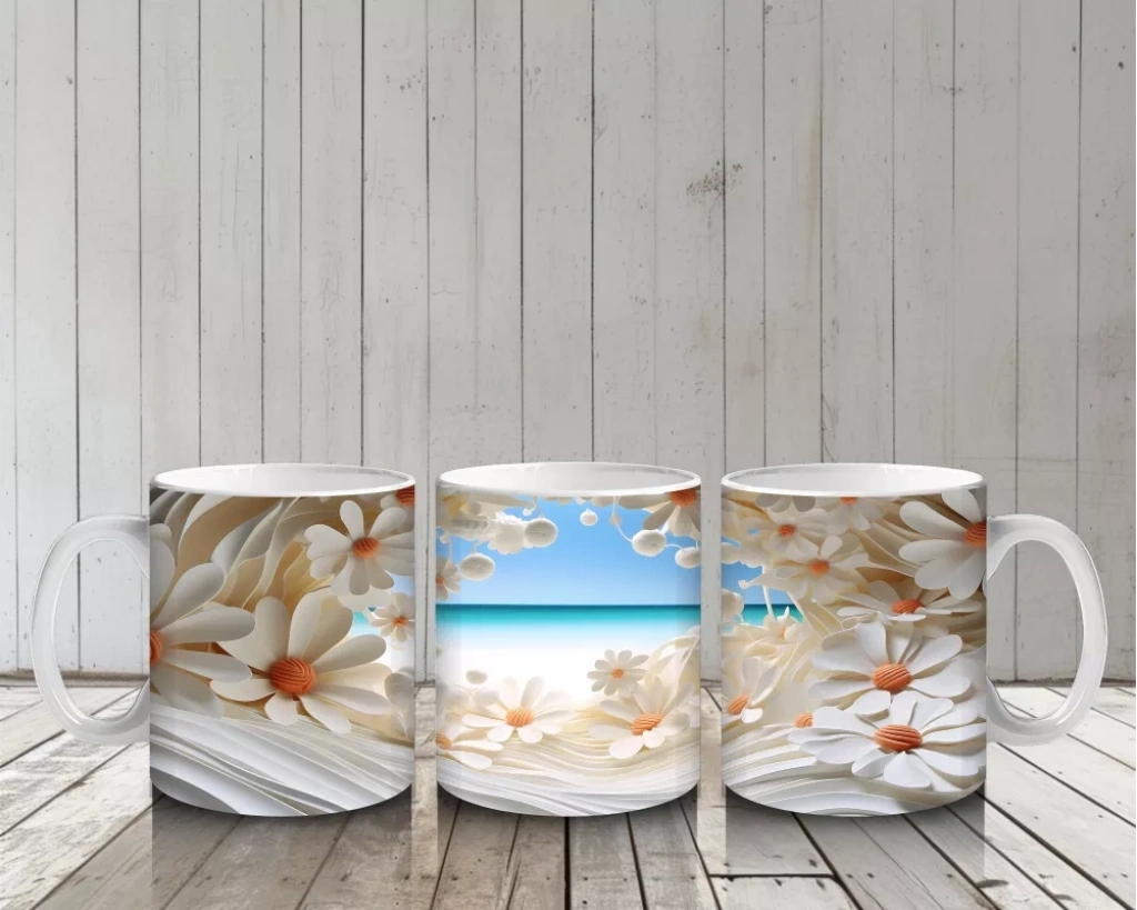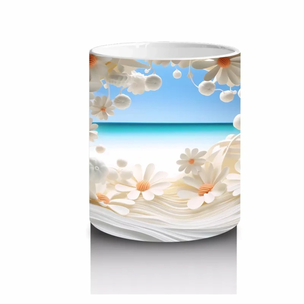 Çiçek Tünelinden Mavi Deniz Manzarası – Yaz Temalı Kupa Bardak