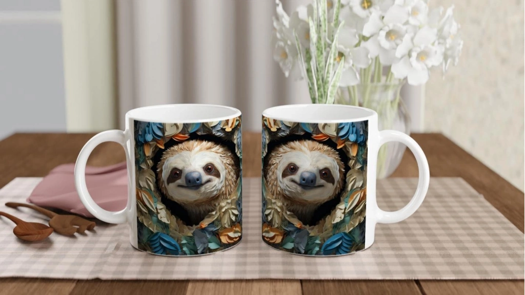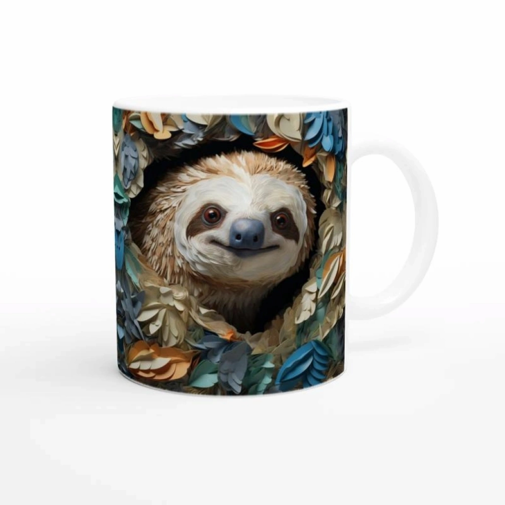 Çiçekler Arasında Gülümseyen Tembel Hayvan Temalı Baskılı Kupa Bardak, neşeli ruhu ve detaylı tasarımıyla her yudumda içten bir tebessüm uyandırır. Sıra dışı ve eğlenceli bir hediye alternatifi arayanlar için mükemmel.