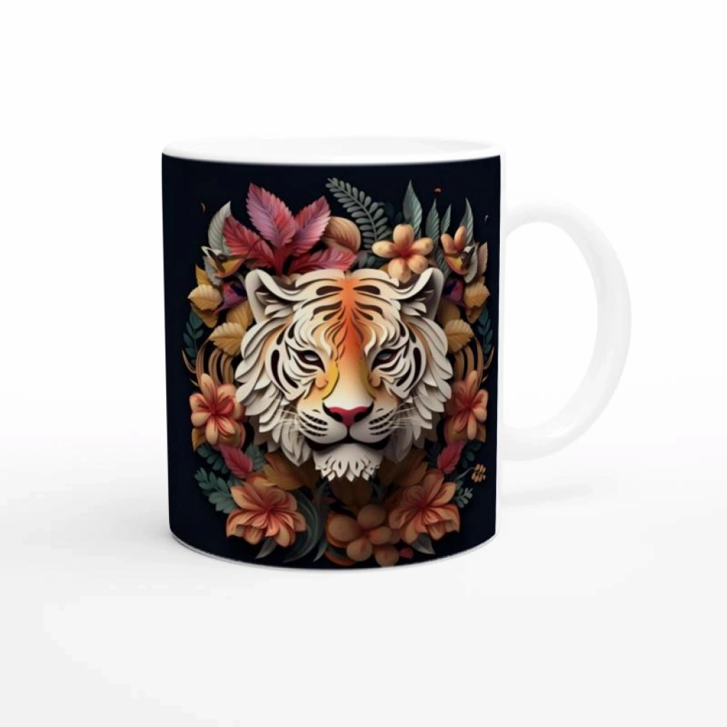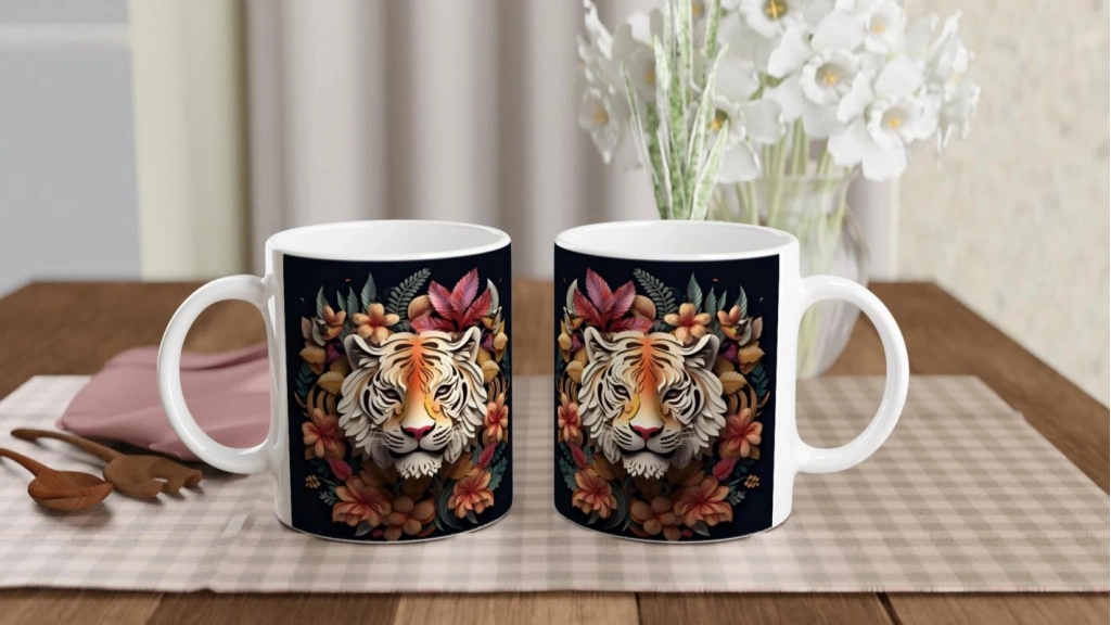 Çiçekli Kaplan Tasarımlı Sanatsal Kupa Bardak