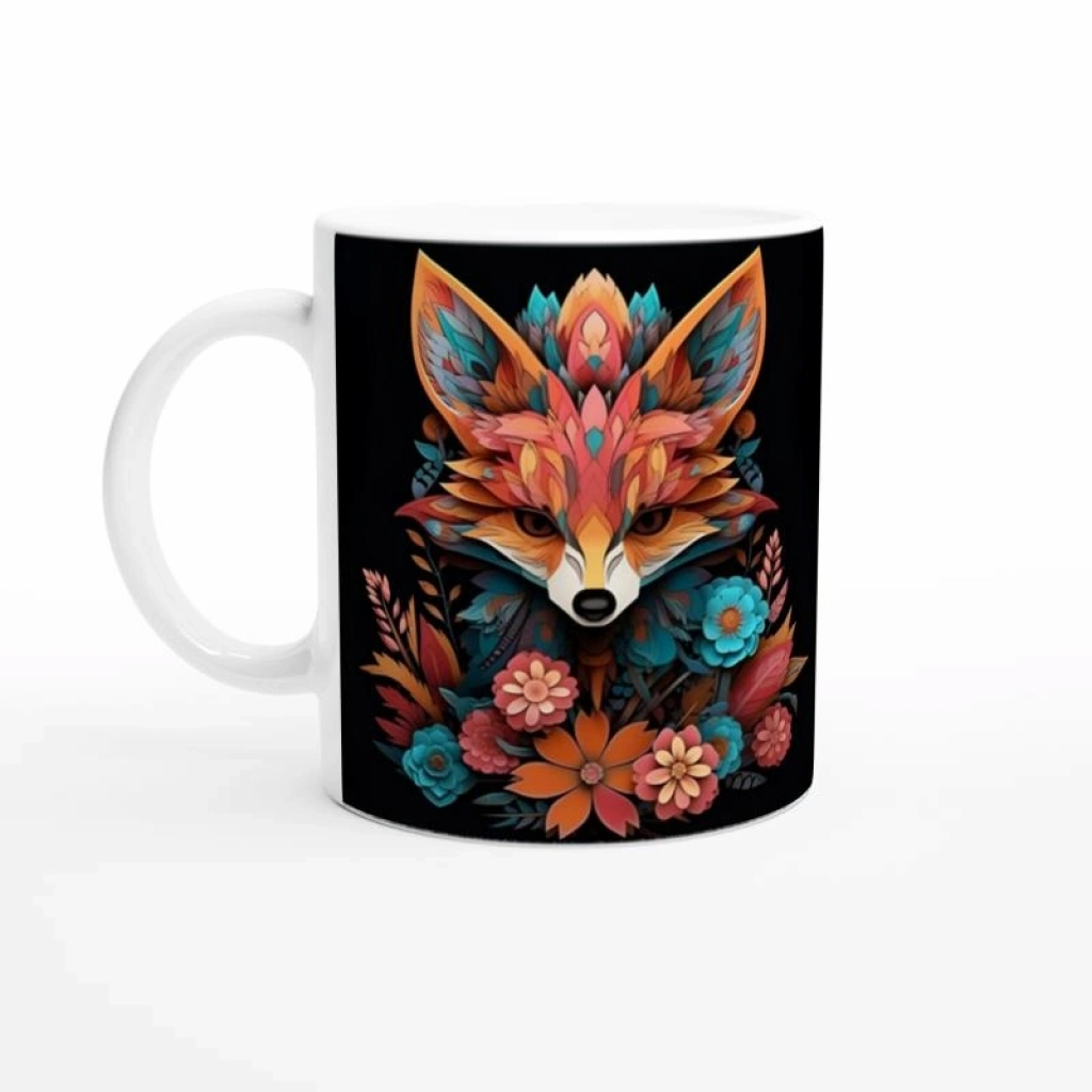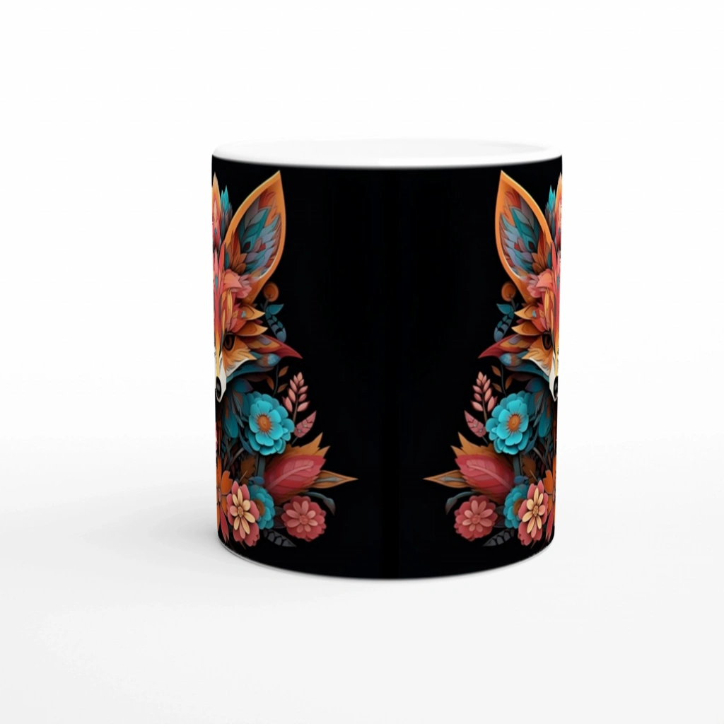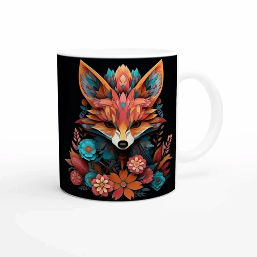 Cesur ve özgün bir stil arayanlar için birebir! Bu çiçeklerle bezenmiş renkli tilki figürlü kupa bardak,
