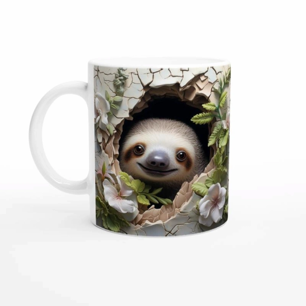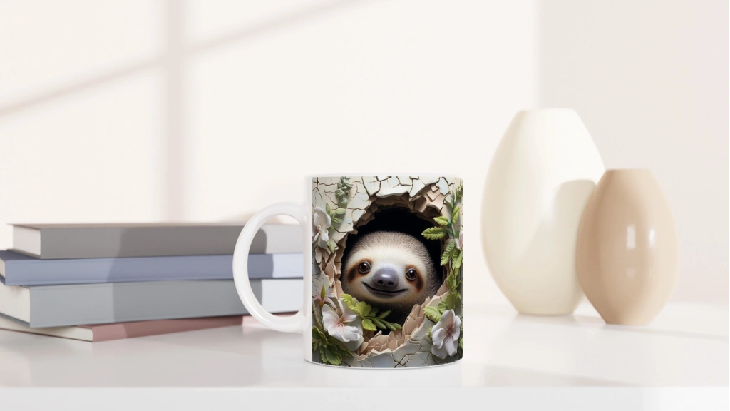 Çiçekli Tembel Hayvan Baskılı Kupa Bardak