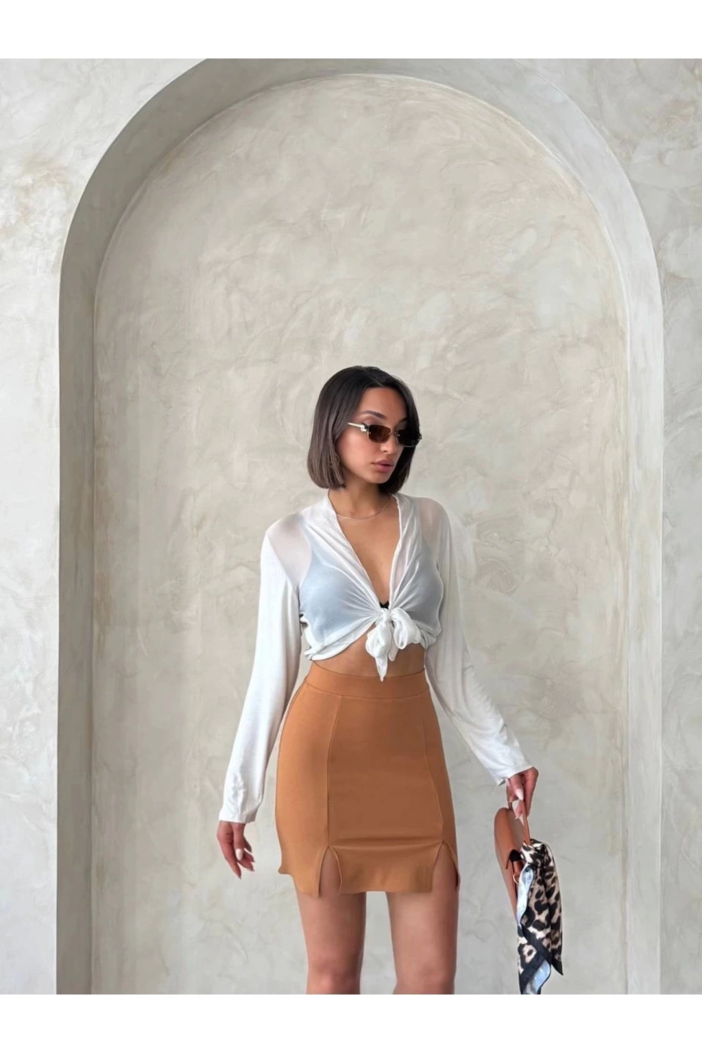 Çift Yırtmaçlı Etek Camel S25910
