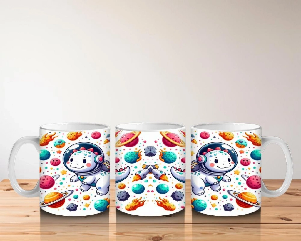 Çocuklara Sütü Sevdiren Astronot Kasklı Sevimli Dinozor Desenli Kupa Bardak