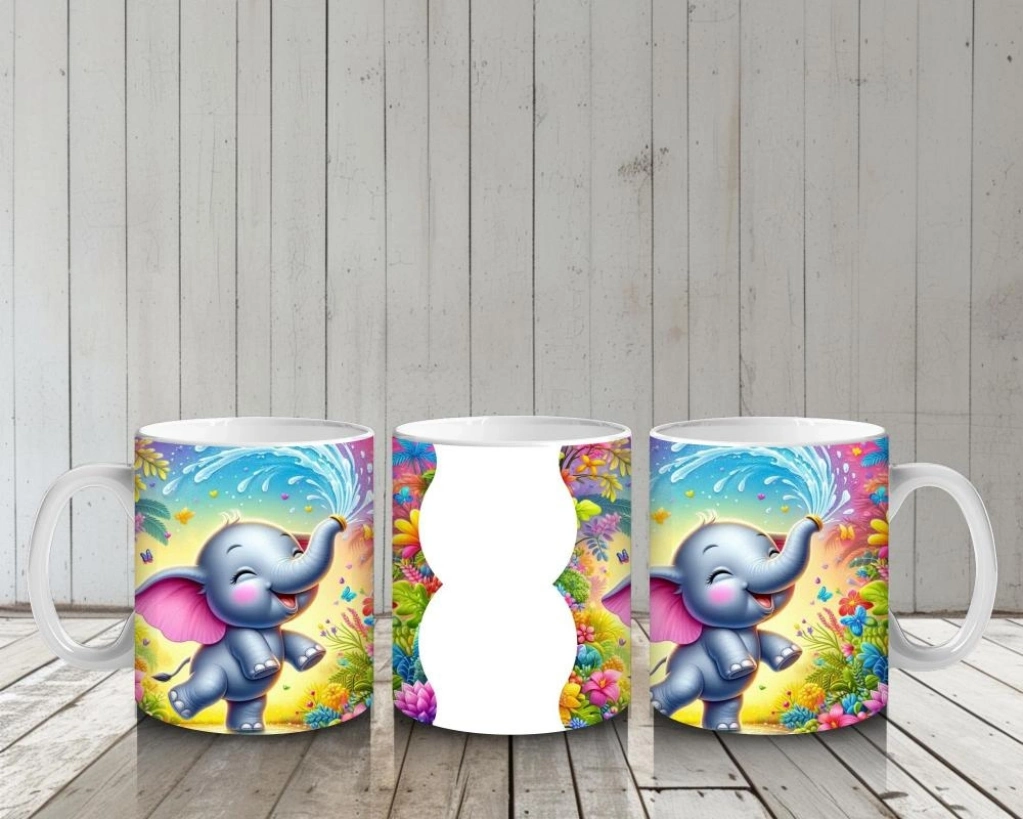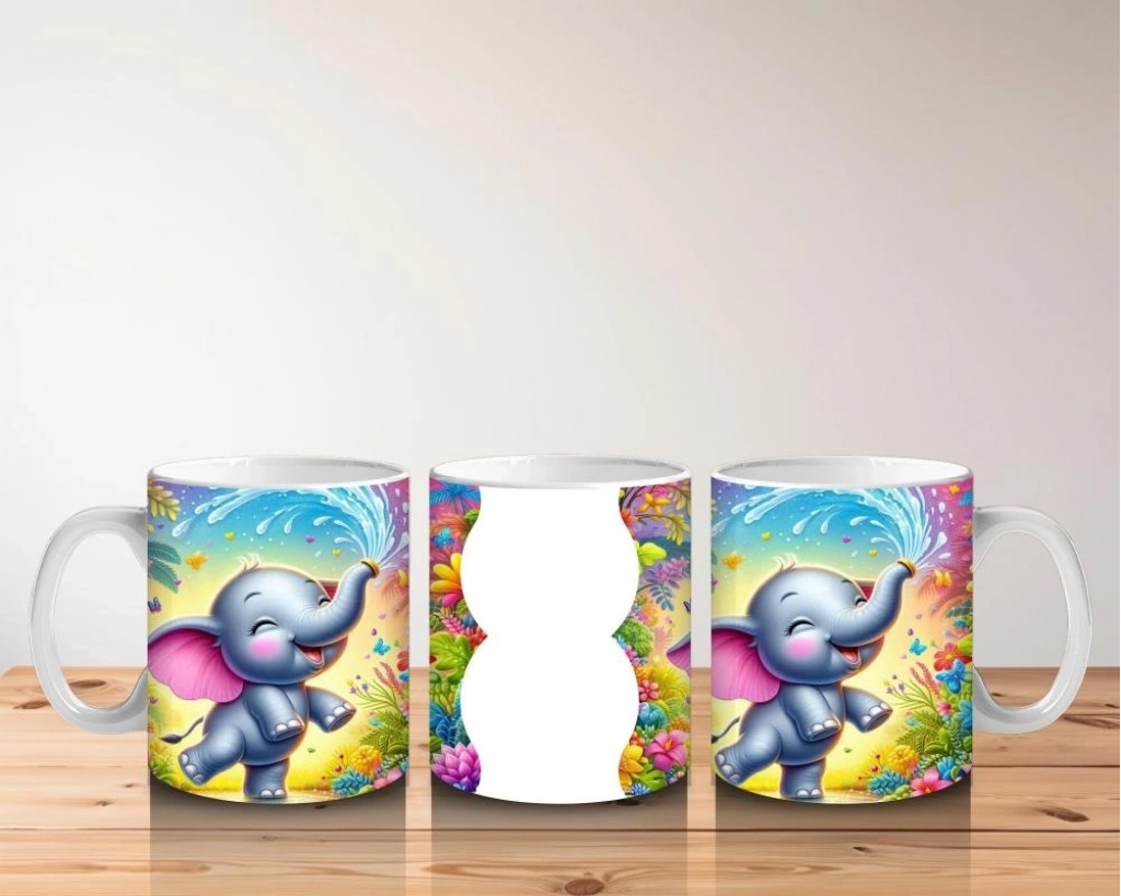 Rengârenk çiçeklerin arasında suyla oynayan tatlı bir fil… Bu neşeli tasarım, süt saatlerini çocuklar için eğlenceli bir oyuna dönüştürüyor.