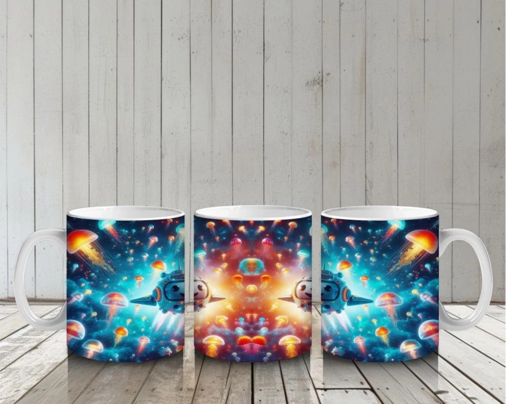 Çocuklara Sütü Sevdiren Denizaltı Roketleri ve Işık Saçan Denizanası Ormanı Desenli Kupa Bardak