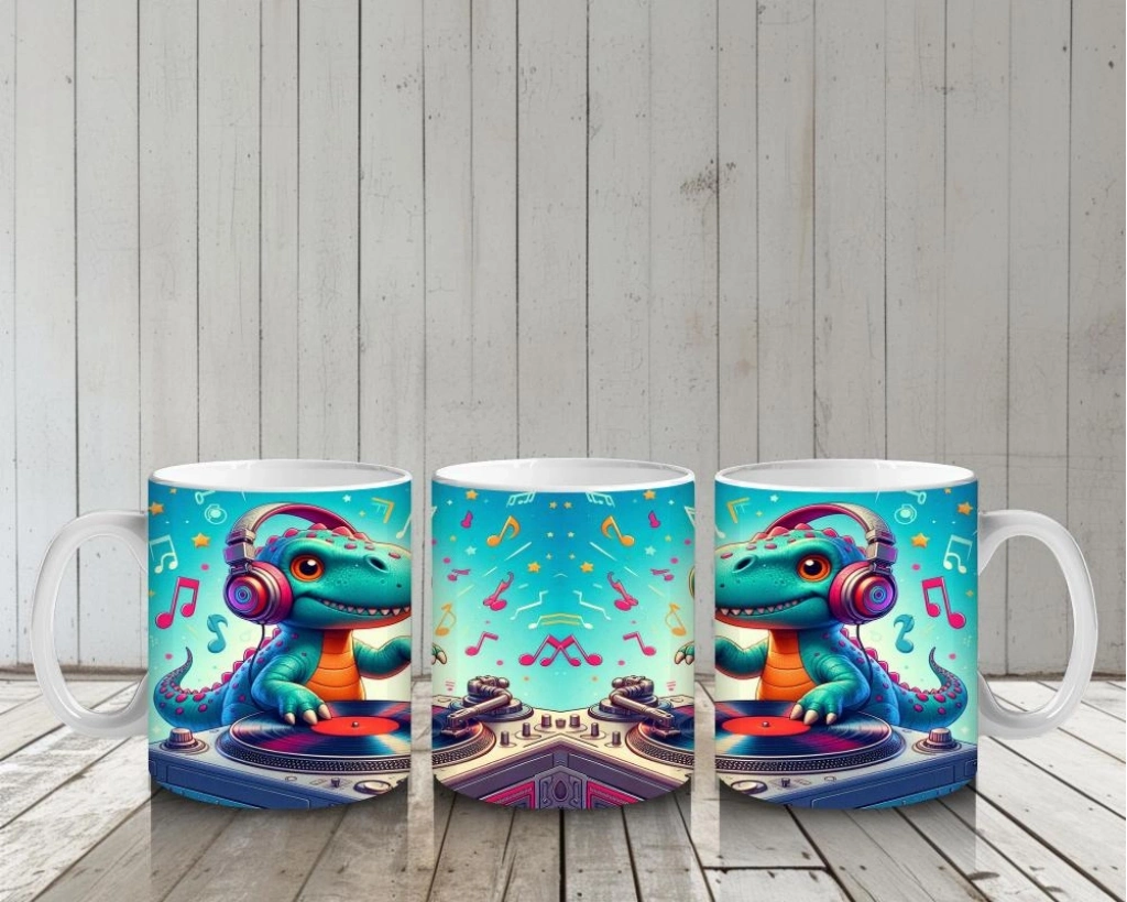 Çocuklara Sütü Sevdiren DJ Dinozor ve Müzik Dolu Parti Desenli Kupa Bardak
