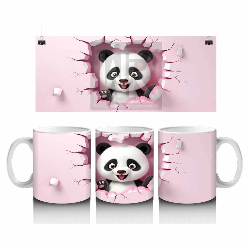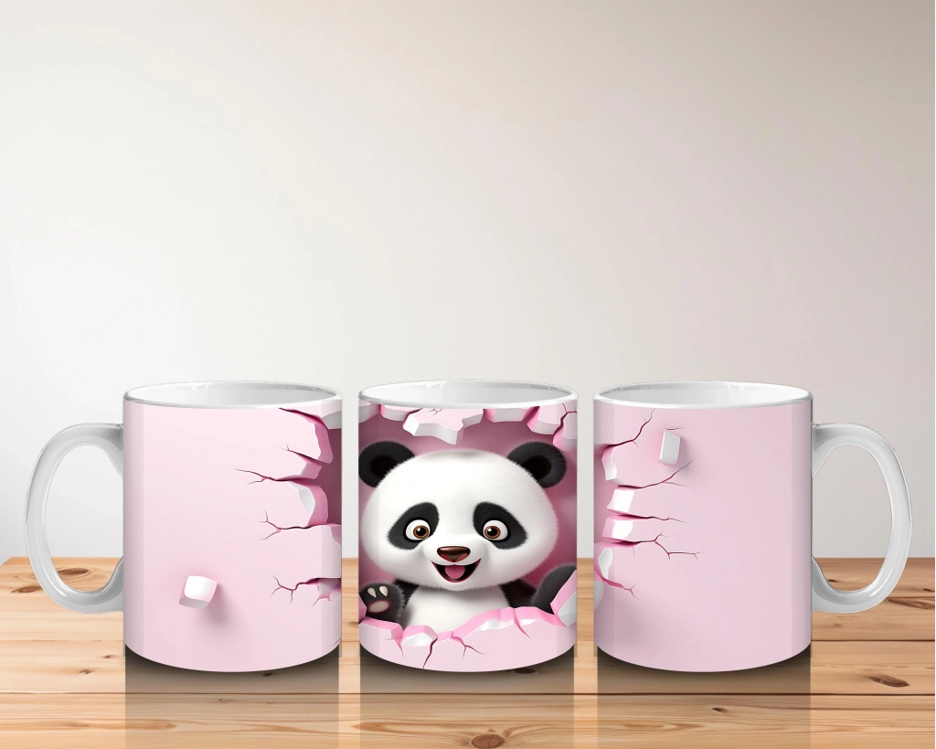 Çocuklara Sütü Sevdiren Duvarı Delip Bakan Neşeli Panda Kupa Bardak