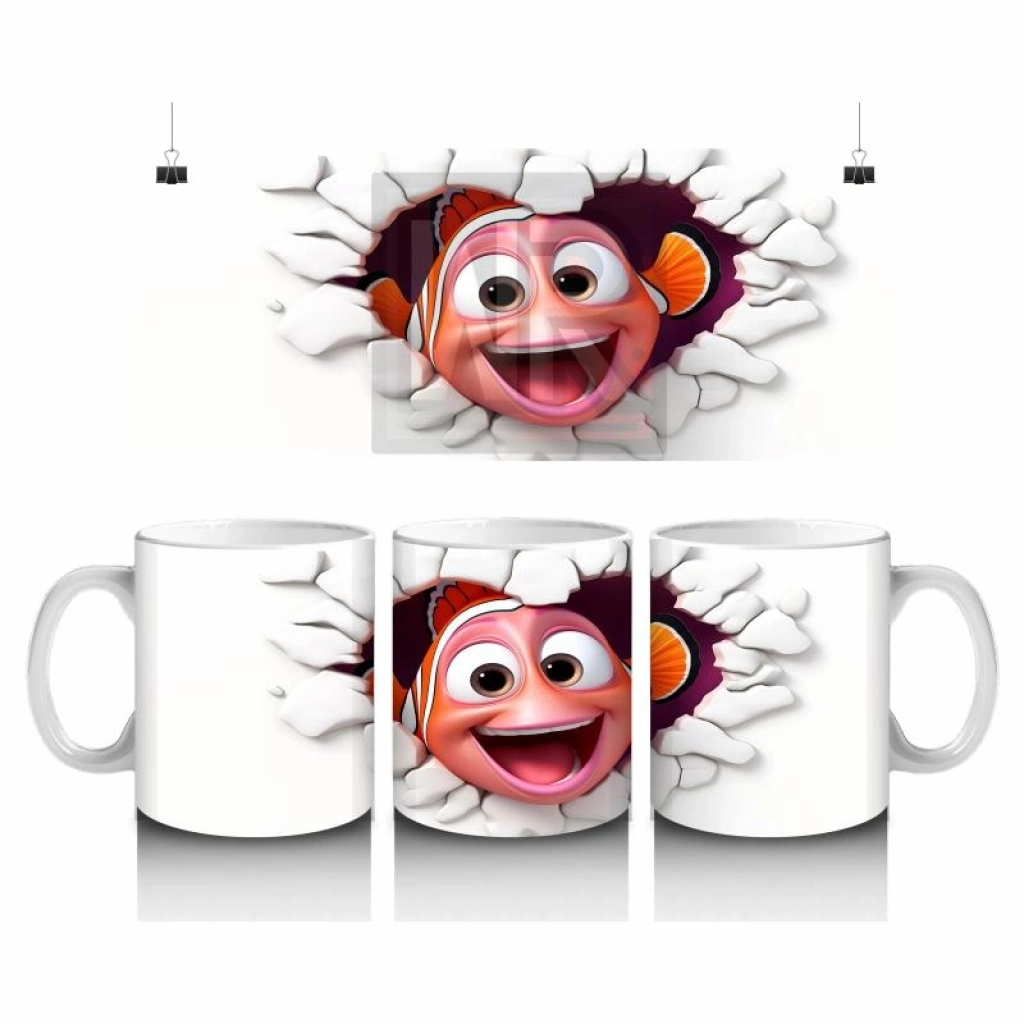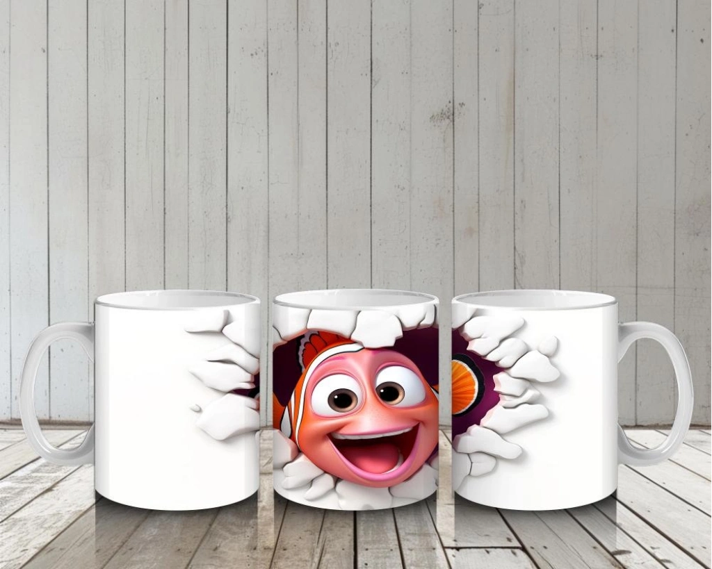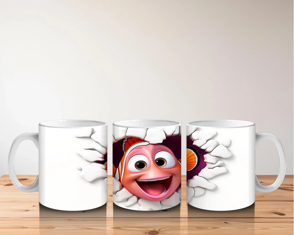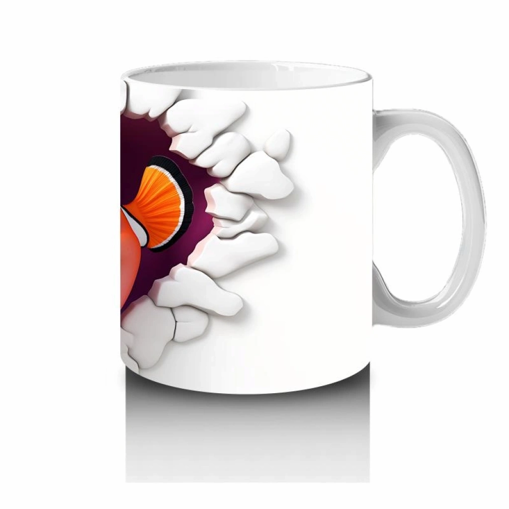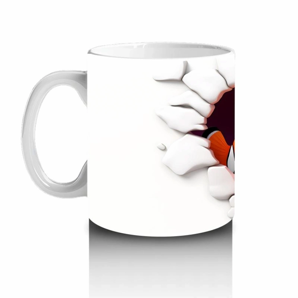Çocuklara Sütü Sevdiren Duvarı Delip Bakan Renkli Palyaço Balığı Kupa Bardak
