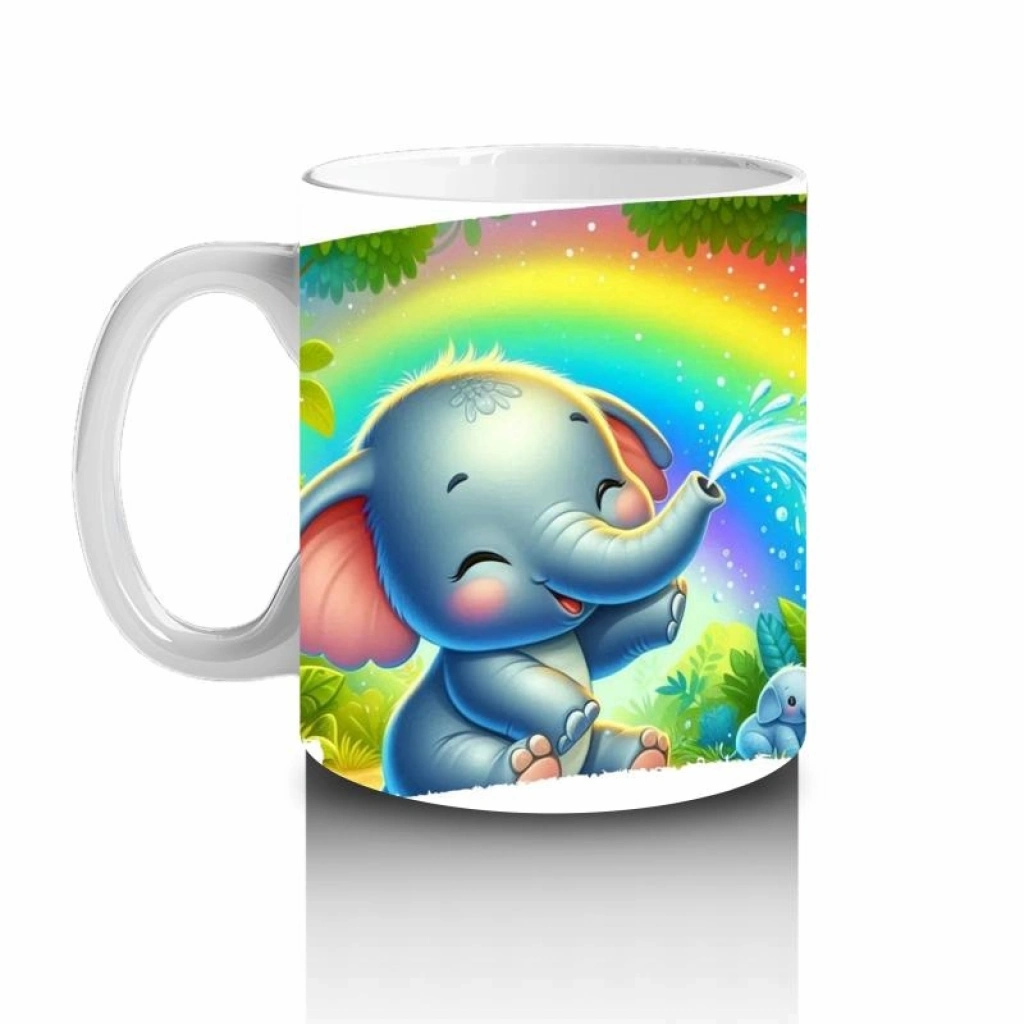 Gökkuşağı altında su püskürten bu eğlenceli fil, süt saatlerini renkli bir oyuna çeviriyor. Neşe fışkıran bir tasarım!