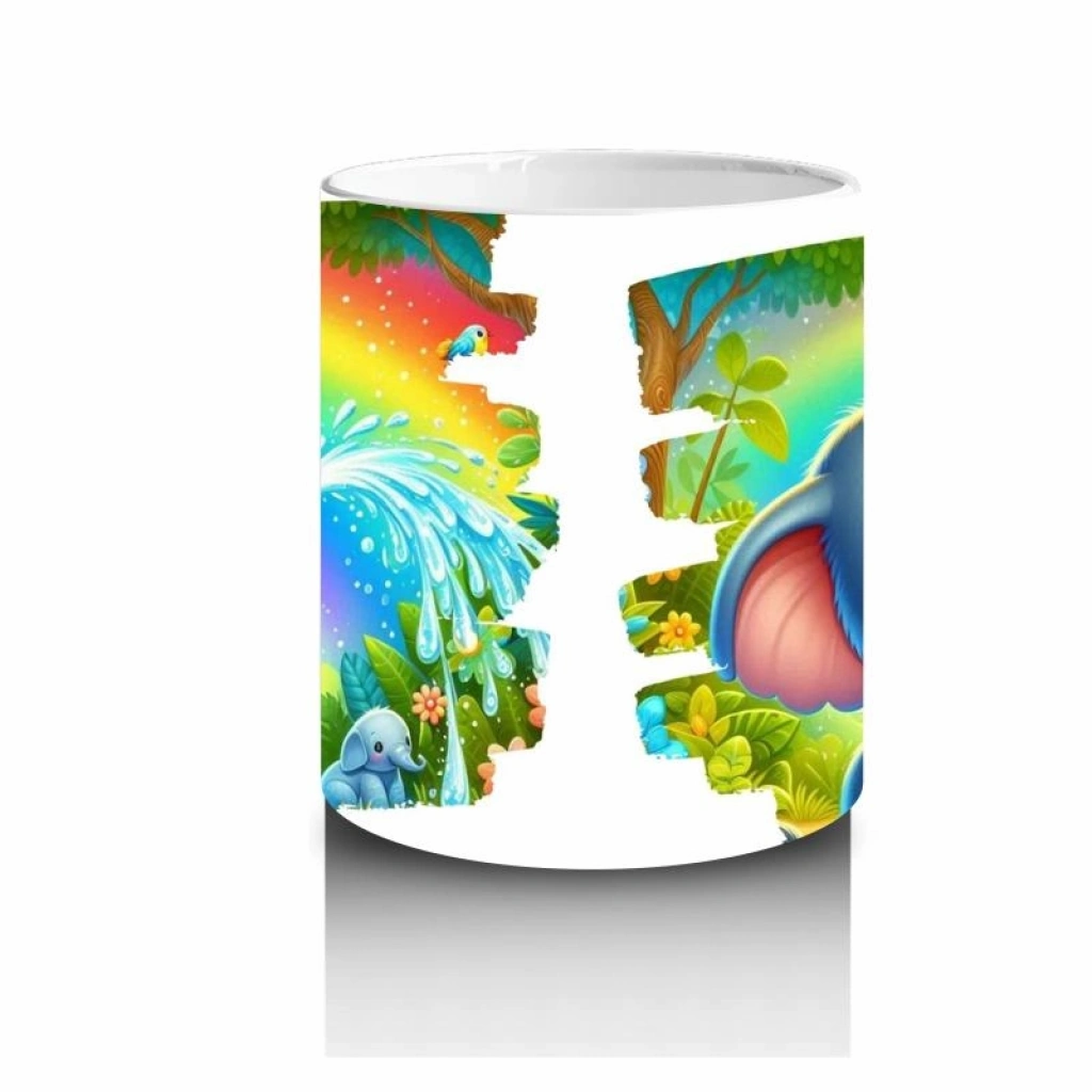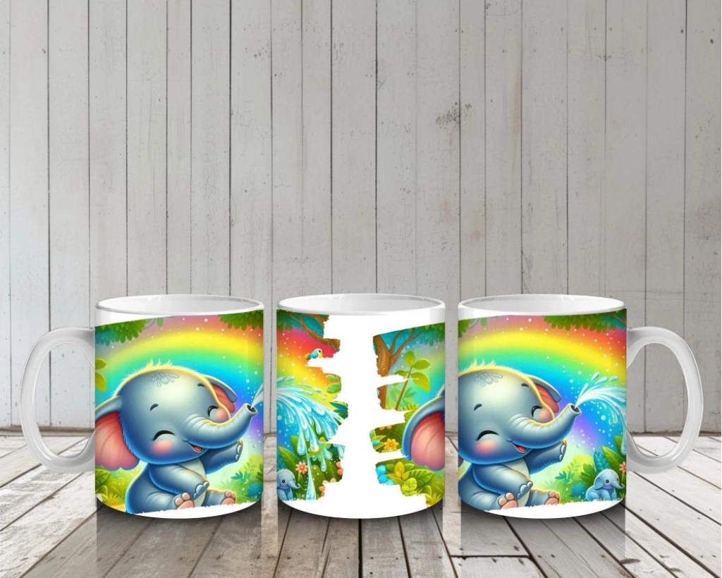 Çocuklara Sütü Sevdiren Gökkuşağı Altında Su Fışkırtan Sevimli Fil Desenli Kupa Bardak