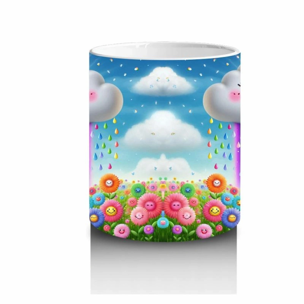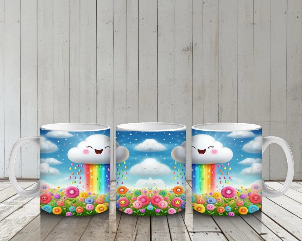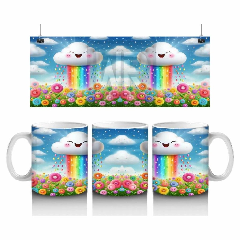 Gülümseyerek gökkuşağı yağdıran bu tatlı bulut, süt saatini minikler için renkli ve neşeli bir gökyüzü şölenine çeviriyor.