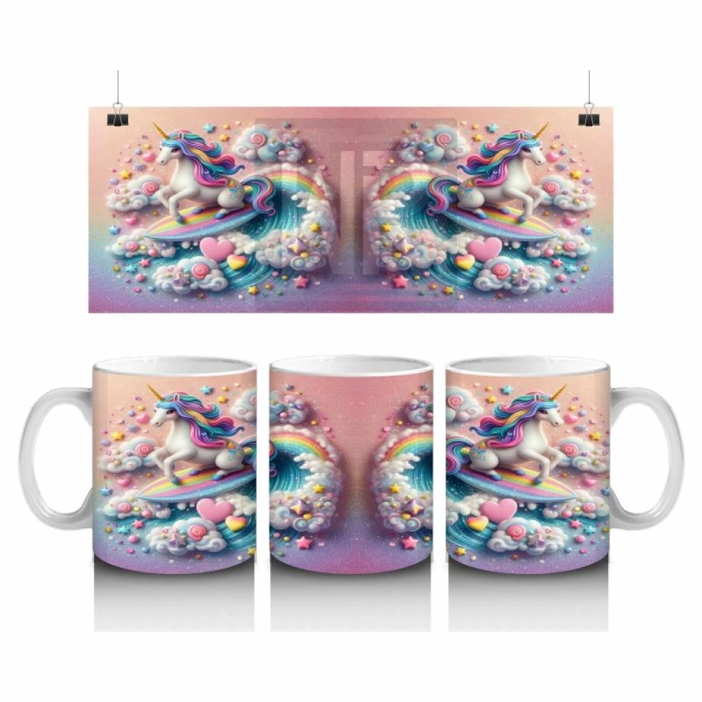 Gökkuşağının dalgalarında sörf yapan eğlenceli bir unicorn… Bu renkli ve enerjik tasarım, süt saatini neşe dolu bir yolculuğa çeviriyor.