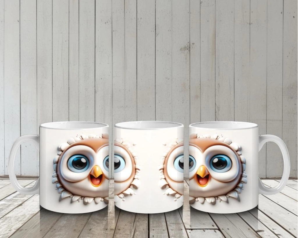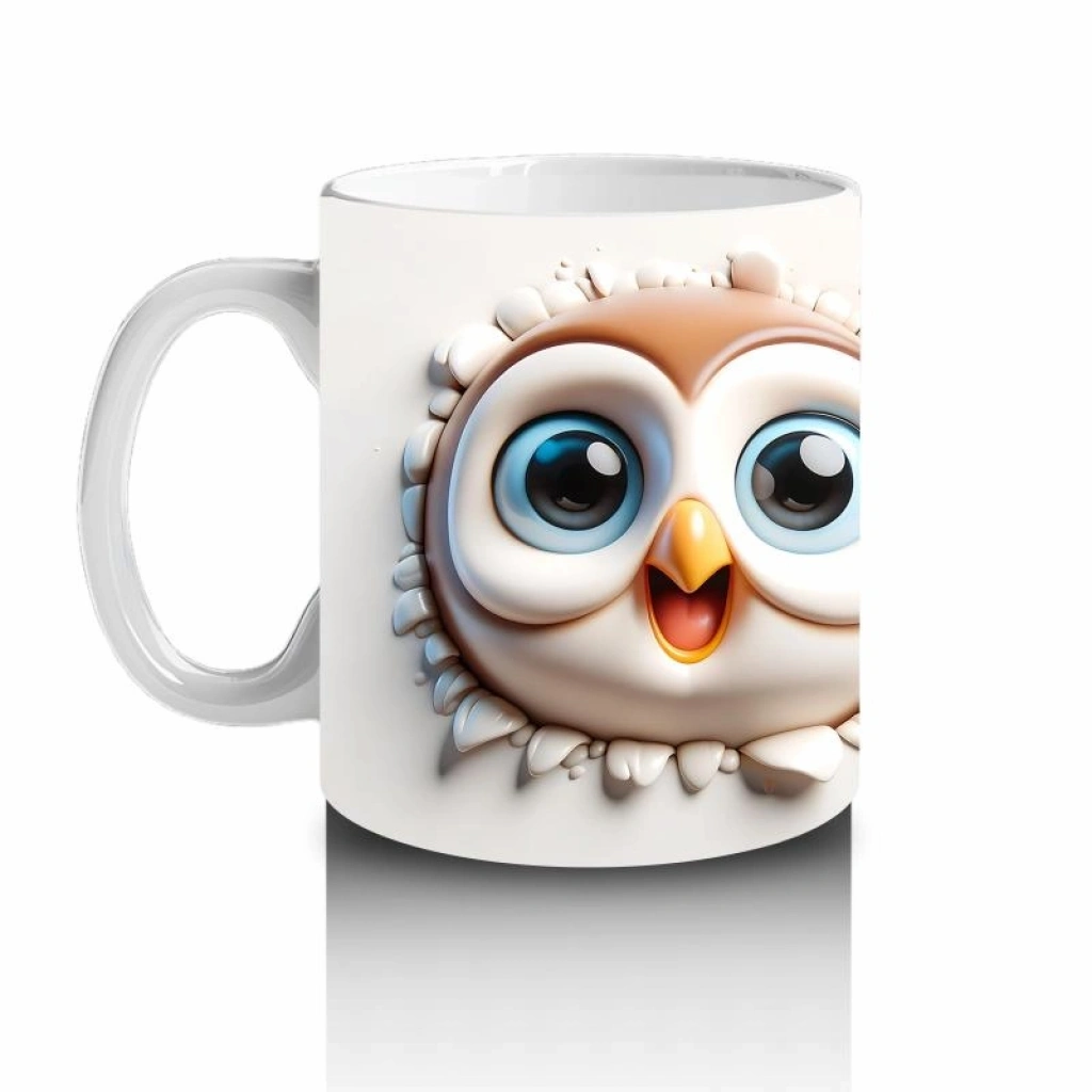 Çocuklara Sütdiren Gözleri Parıldayan Baykuş Çifti Kupa Bardak