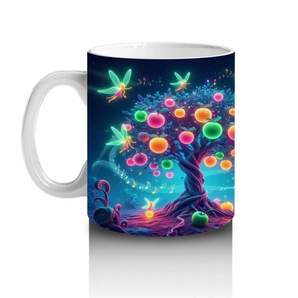 Çocuklara Sütü Sevdiren Işıltılı Peri Kuşları ve Masal Ağacı Desenli Kupa Bardak