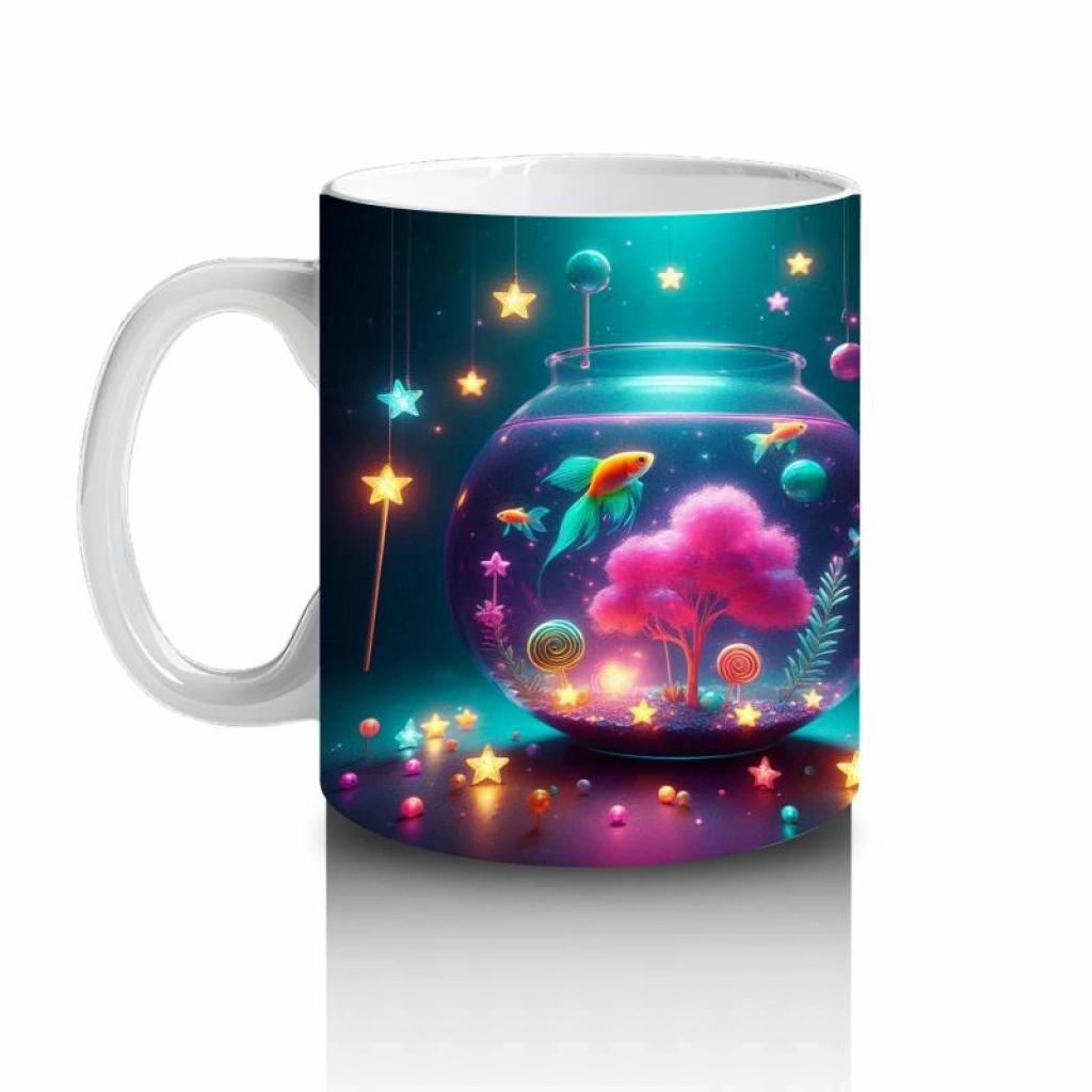 Çocuklara Sütü Sevdiren Işıltılı Renkli Balık Akvaryumu Desenli Kupa Bardak