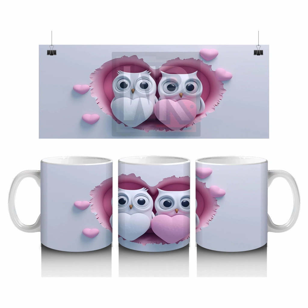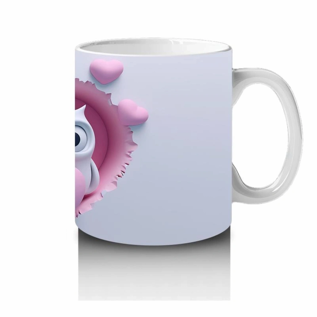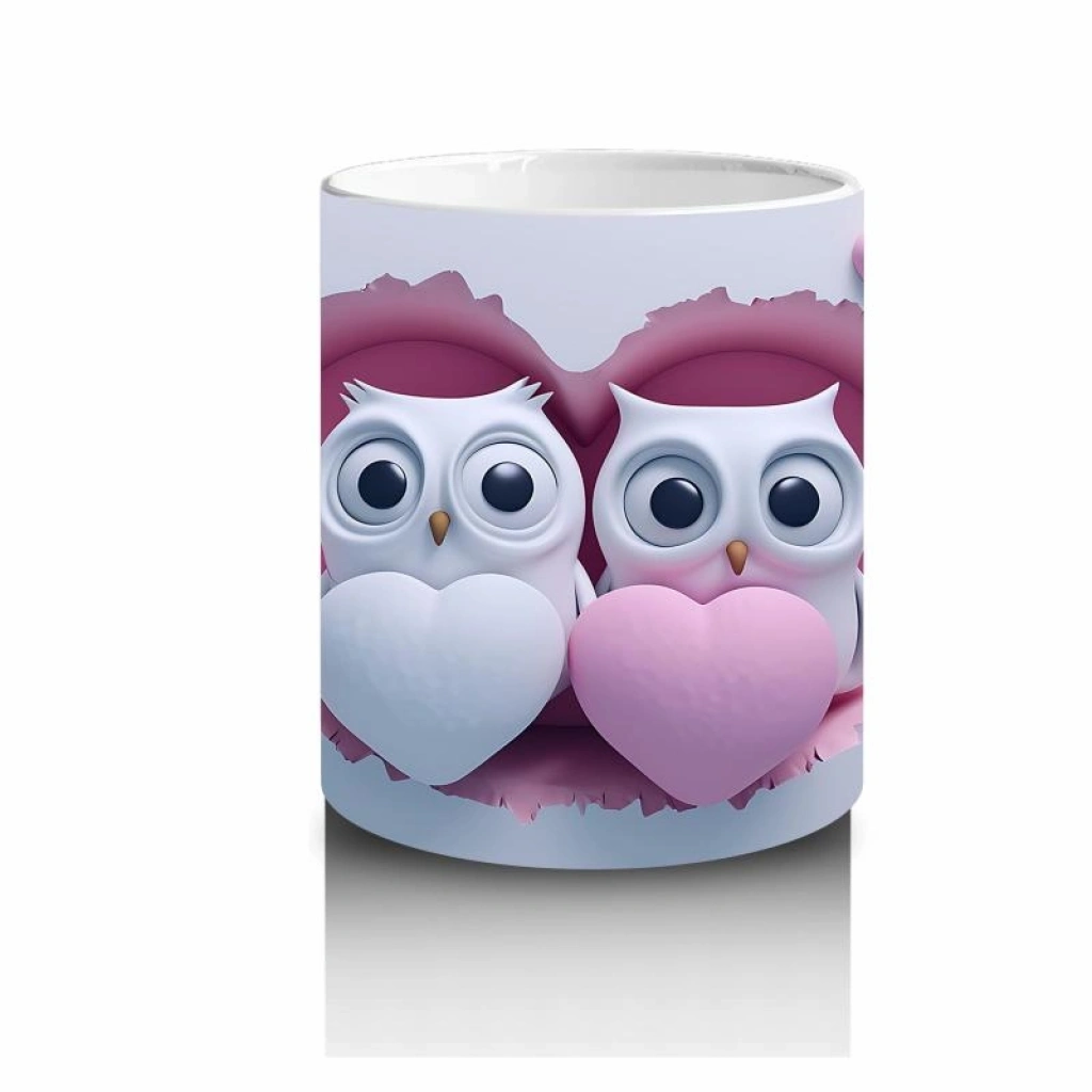 Çocuklara Sütü Sevdiren Kalp Çatlağından Bakan Neşeli Baykuş Çifti Kupa Bardak
