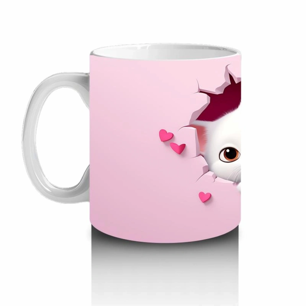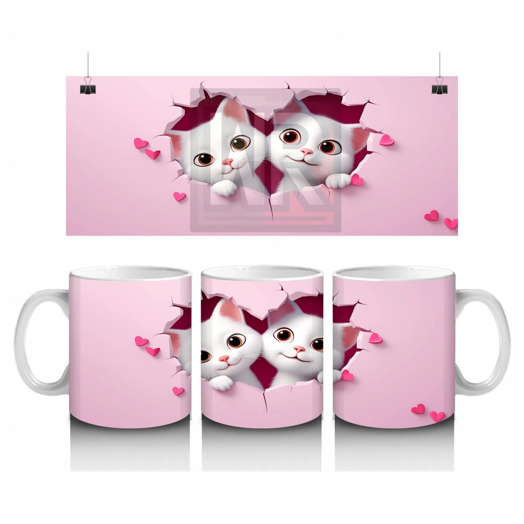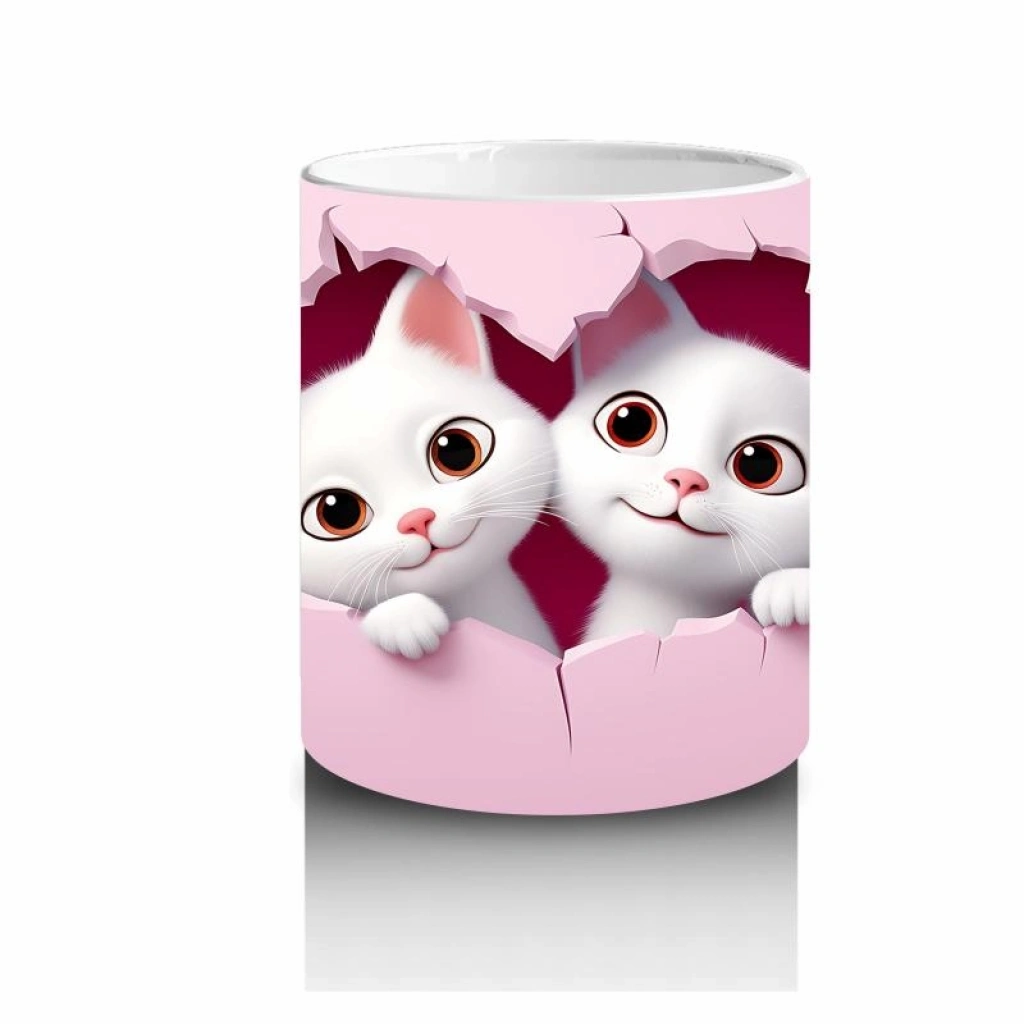 Çocuklara Sütü Sevdiren Kalp Çerçevesinden Bakan İki Sevimli Kedi Kupa Bardak
