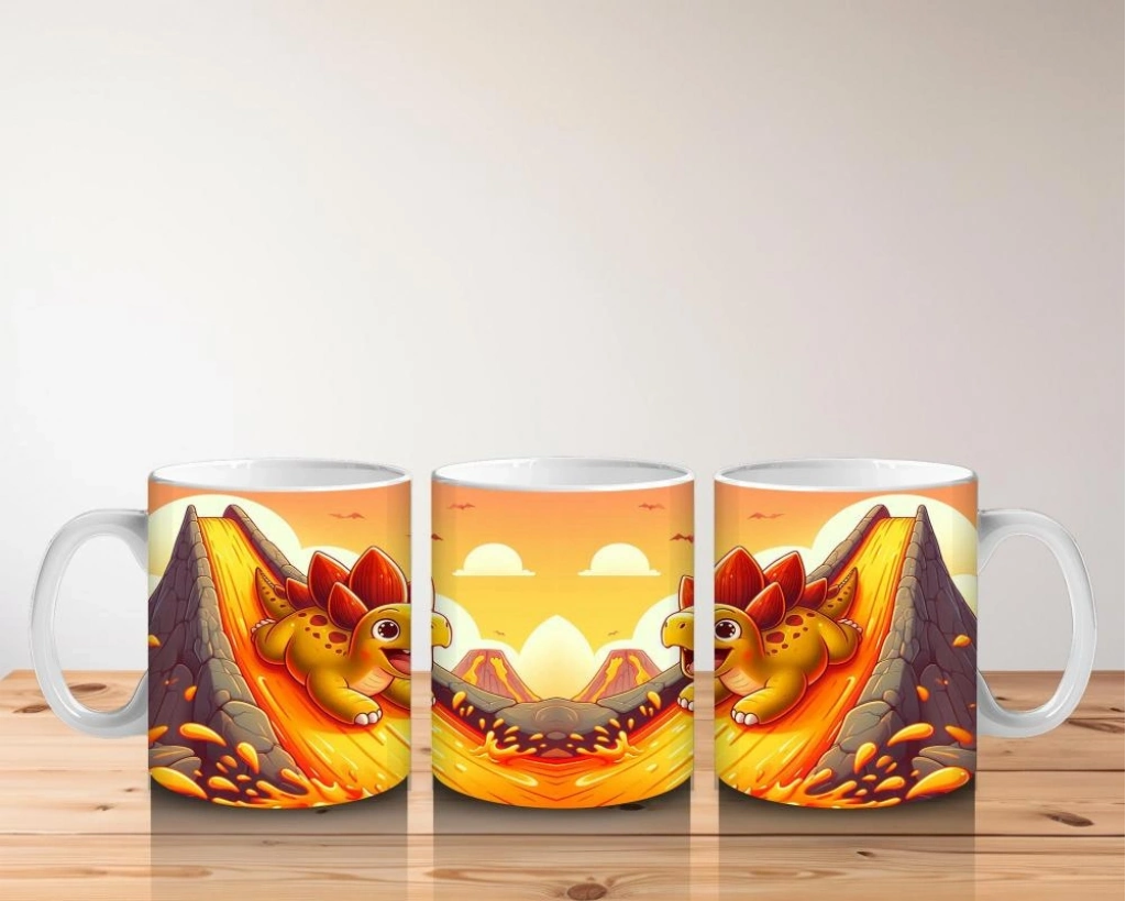 Çocuklara Sütü Sevdiren Lav Kaydıraklarında Kayak Keyfi Yapan Dinozor Desenli Kupa Bardak