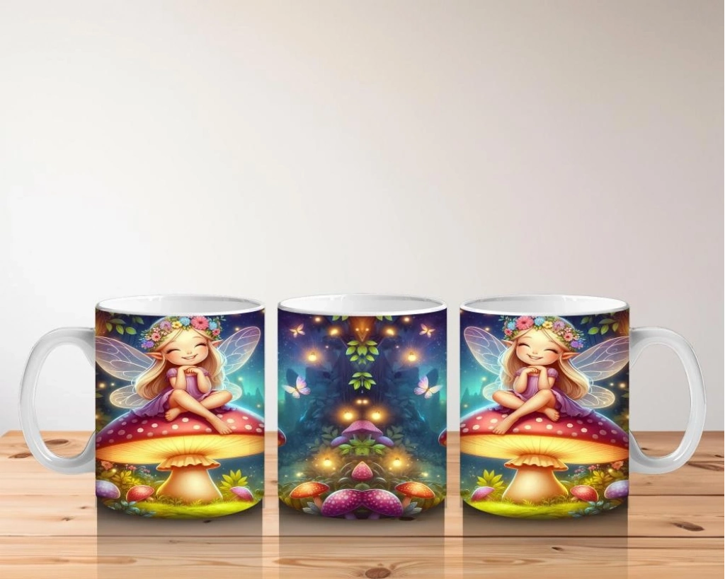 Çocuklara Sütü Sevdiren Mantar Üstünde Oturan Çiçek Taçlı Peri Desenli Kupa Bardak