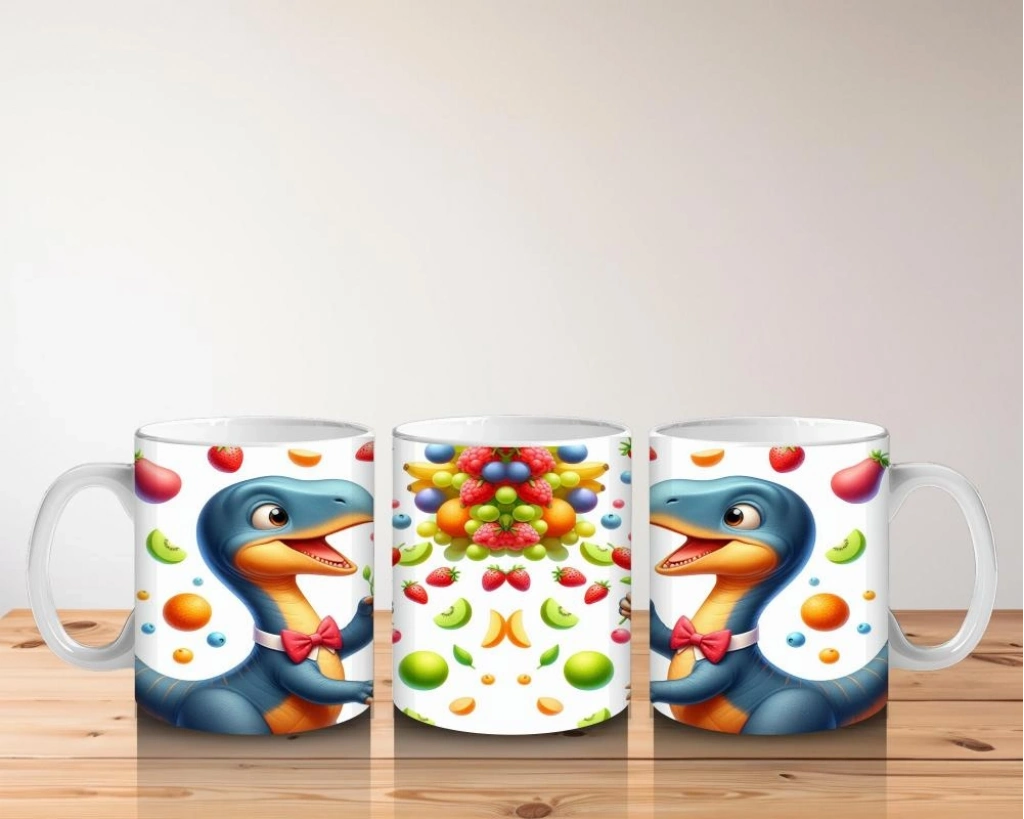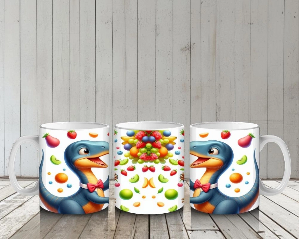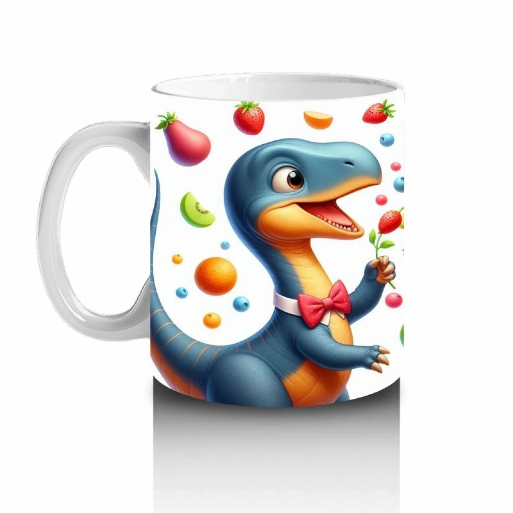 Çocuklara Sütü Sevdiren Meyve Şöleni Yapan Dinozor Desenli Kupa Bardak