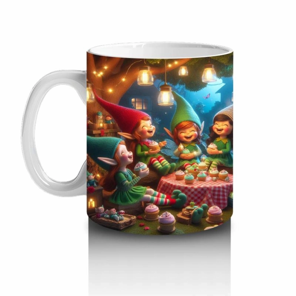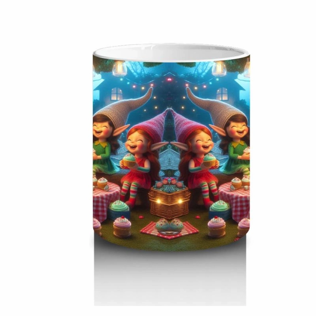 Ormanın derinliklerinde müzik, dans ve bol kahkaha! Neşeli cücelerle dolu bu tasarım, süt saatini bir doğa şenliğine çeviriyor.