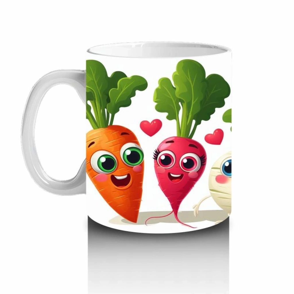 Çocuklara Sütü Sevdiren Neşeli Sebzeler ve Kalpler Desenli Kupa Bardak