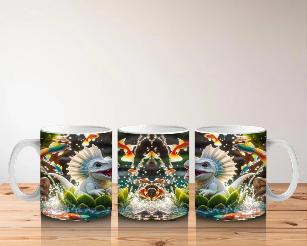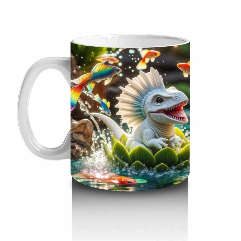 Nilüfer yaprakları üzerinde keyif yapan sevimli bir dinozor… Bu huzurlu sahne, çocukların süt molasını doğayla dolu neşeli bir ana dönüştürüyor.