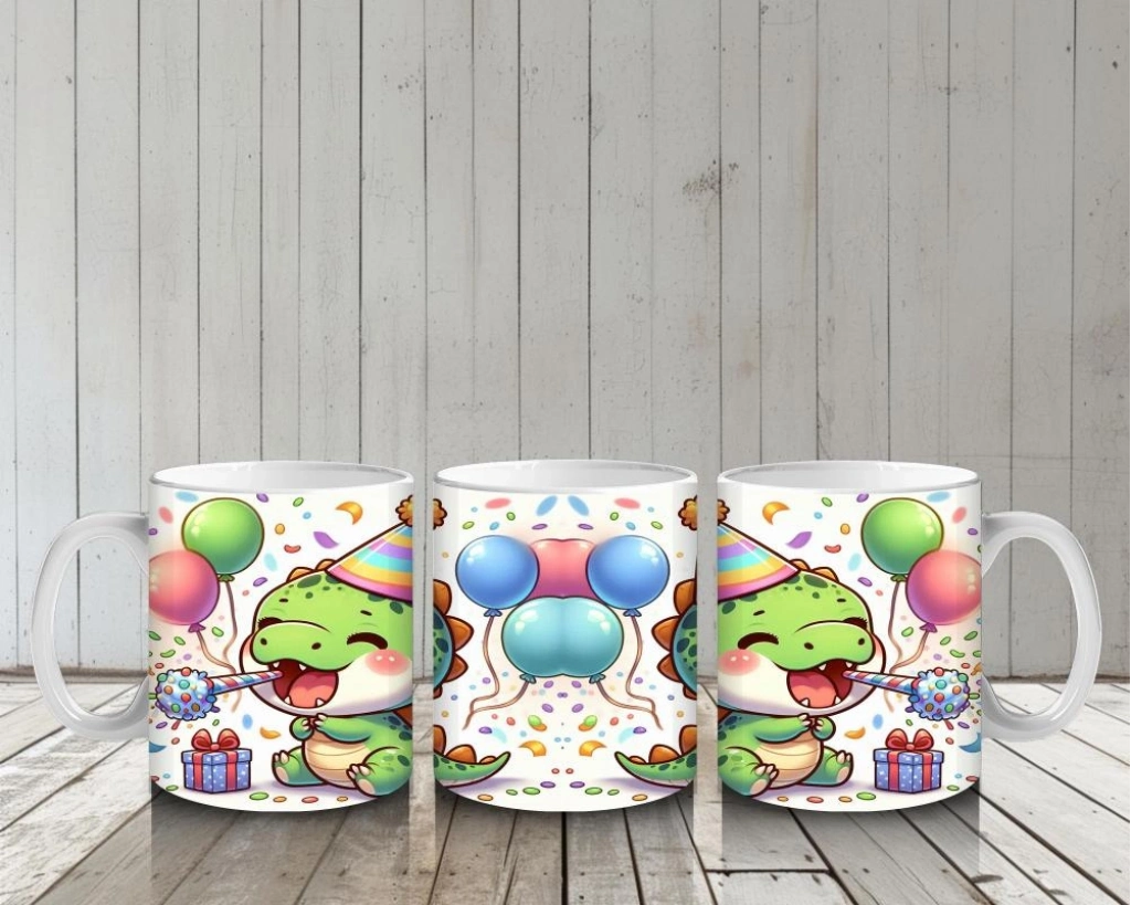 Parti şapkasını takmış, gülümsemesiyle neşe saçan bu sevimli dinozor, süt saatini çocuklar için eğlenceli bir kutlamaya dönüştürüyor.
