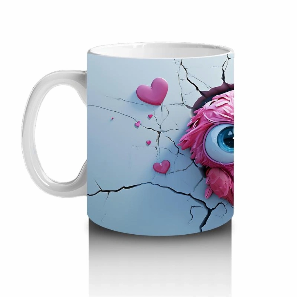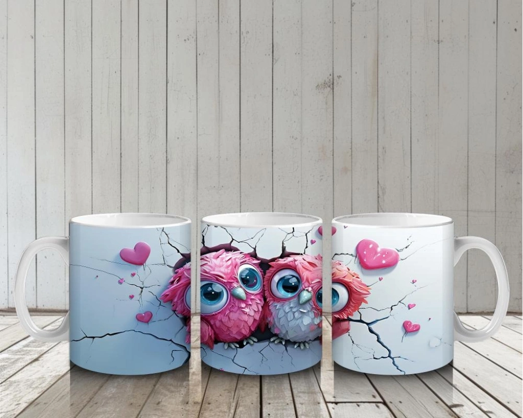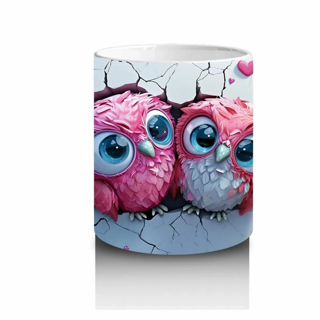 Çocuklara Sütü Sevdiren Pembeli Kalpli Baykuş Çifti Kupa Bardak