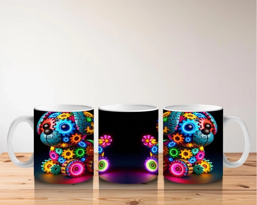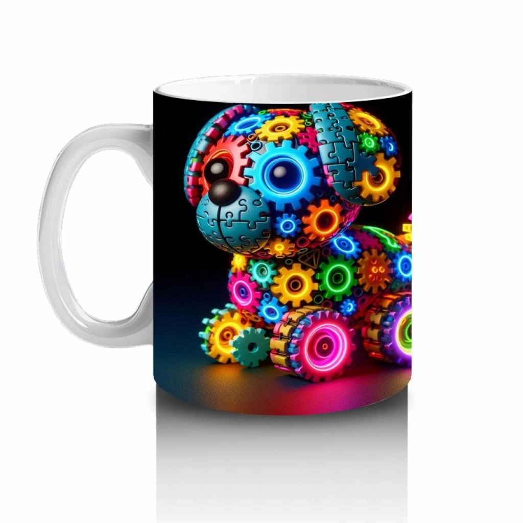 Çocuklara Sütü Sevdiren Renkli Dişli Parçalarla Yapılmış Robot Köpek Desenli Kupa Bardak