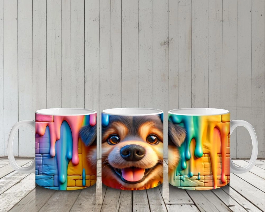 Çocuklara Sütü Sevdiren Renkli Duvar Dostu Köpek Kupa Bardak