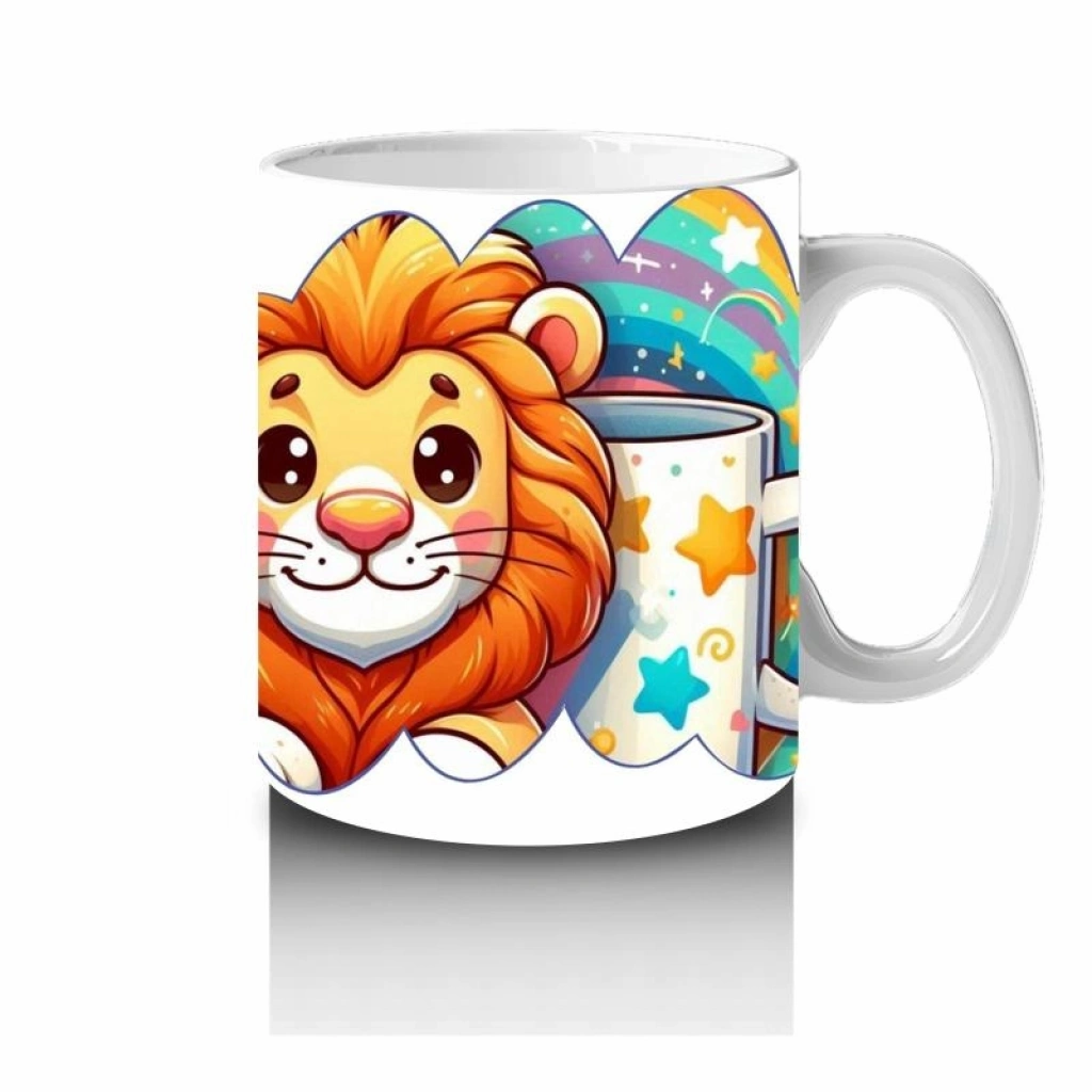 Kendi kupasıyla poz veren bu neşeli aslan, çocuklara hem cesaret hem süt sevgisi aşılıyor. Renkli ve enerjik bir dost!