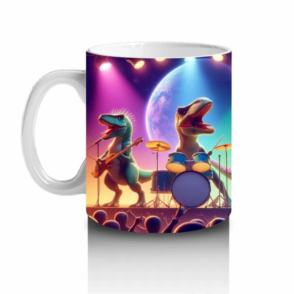 Çocuklara Sütü Sevdiren Sevimli Dinozor Müzik Grubu Desenli Kupa Bardak