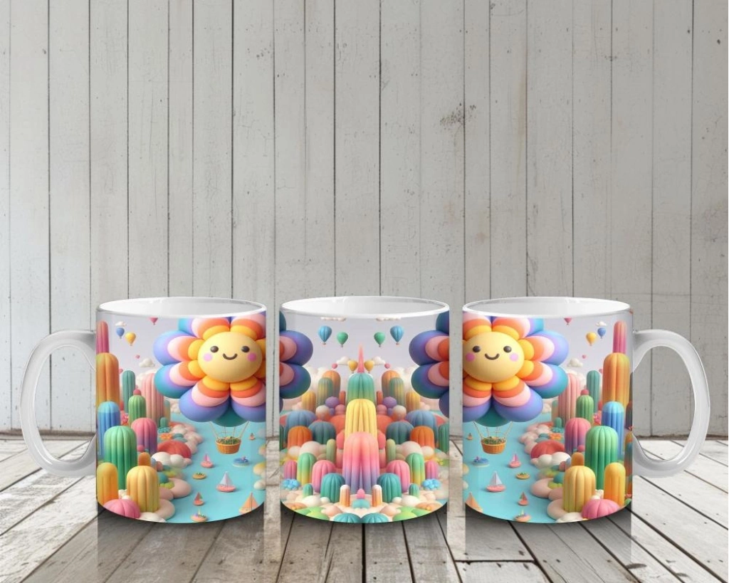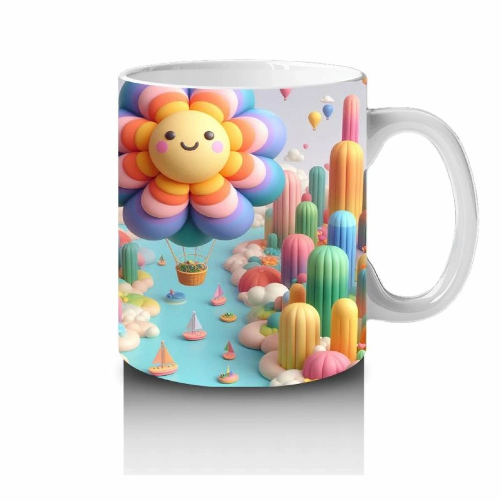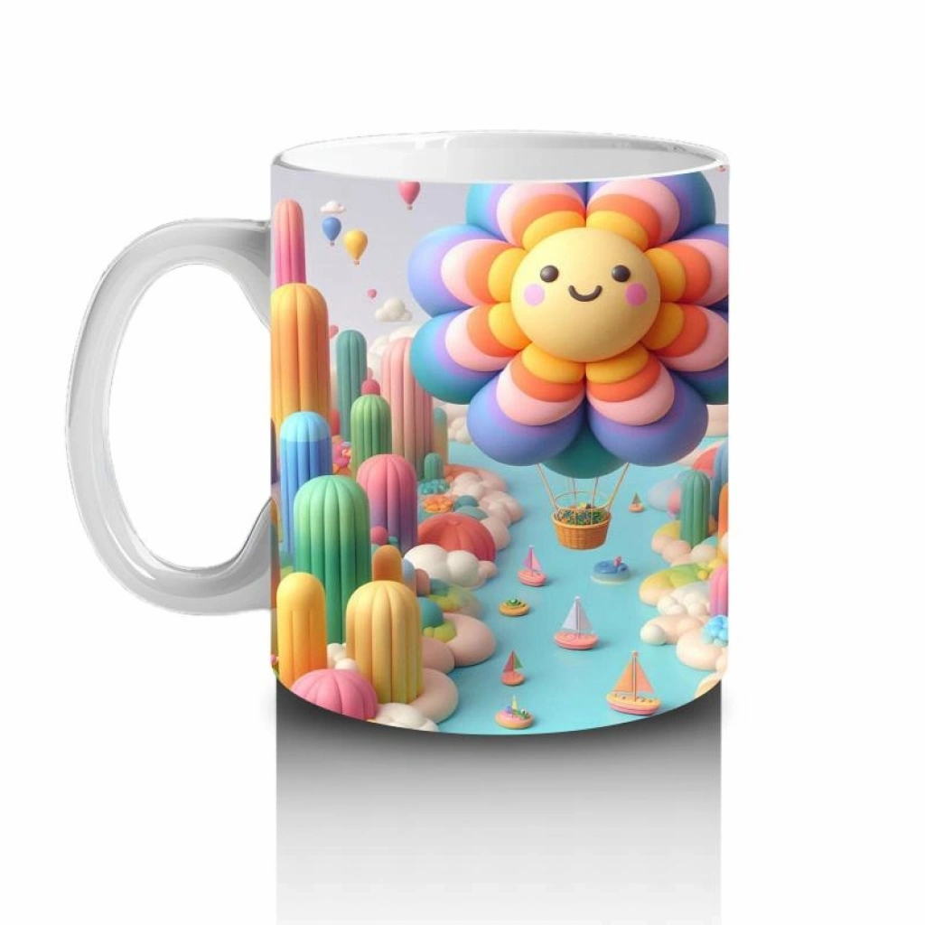 Çocuklara Sütü Sevdiren Uçan Balon Çiçekler ve Renkli Masal Diyarı Desenli Kupa Bardak