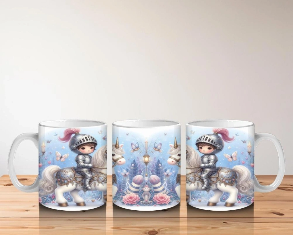 Çocuklara Sütü Sevdiren Unicorn Üzerinde Zırhlı Şövalye Desenli Kupa Bardak