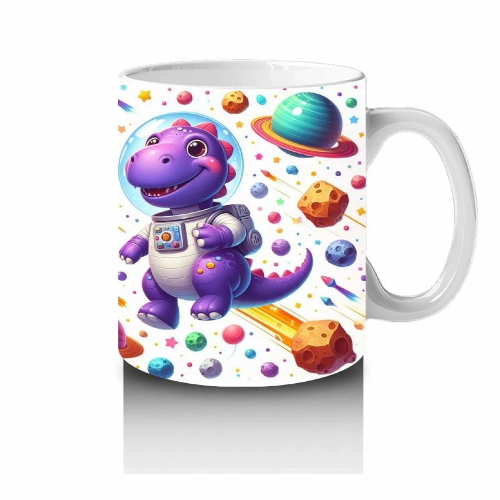 Astronot kıyafetleriyle uzayda süzülen sevimli bir dinozor… Bu keşif dolu tasarımla süt içmek, minikler için yıldızlara uzanan bir macera!