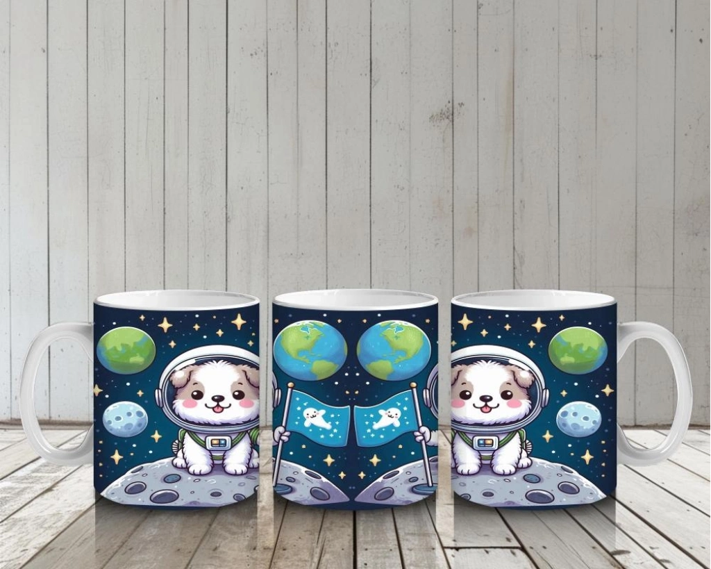 Uzayın derinliklerinde bayrağını gururla diken cesur bir köpek! Bu kahramanlık dolu tasarım, süt saatlerini galaktik bir maceraya çeviriyor.