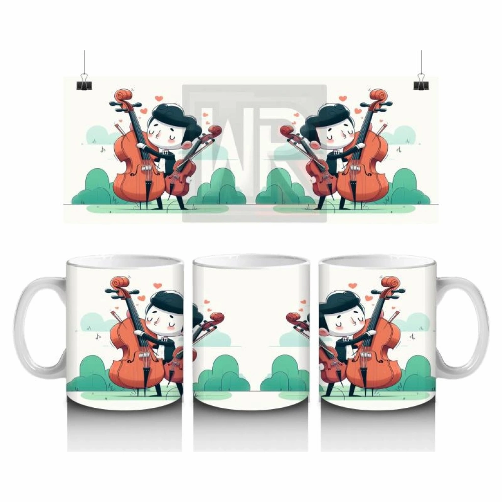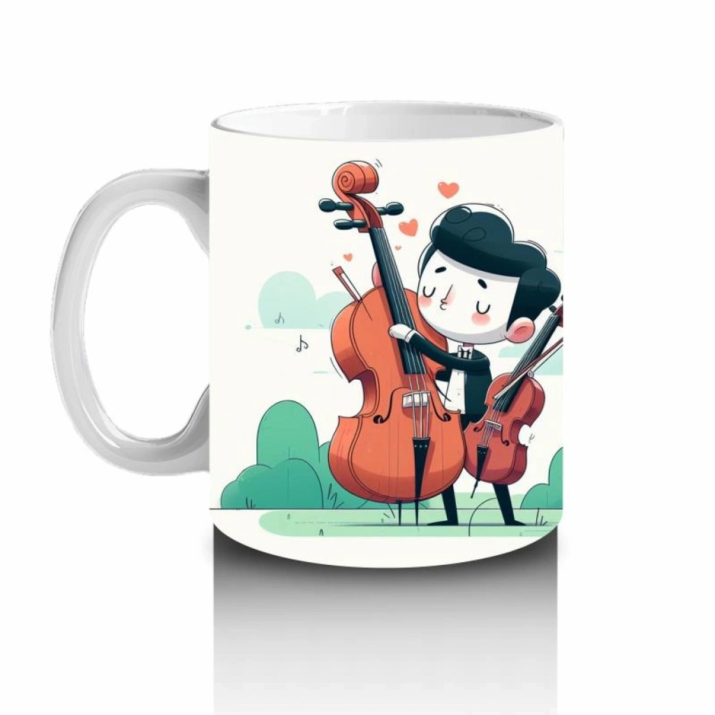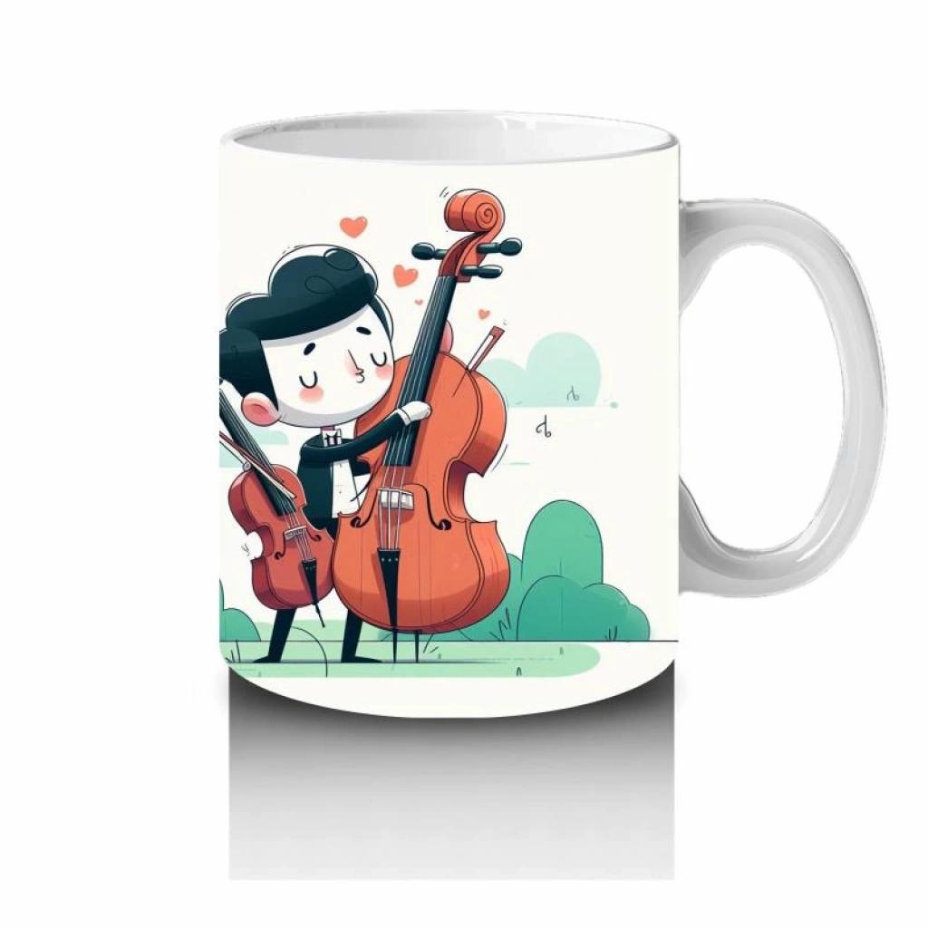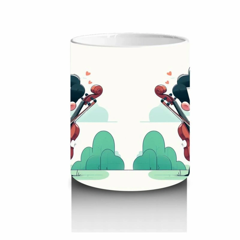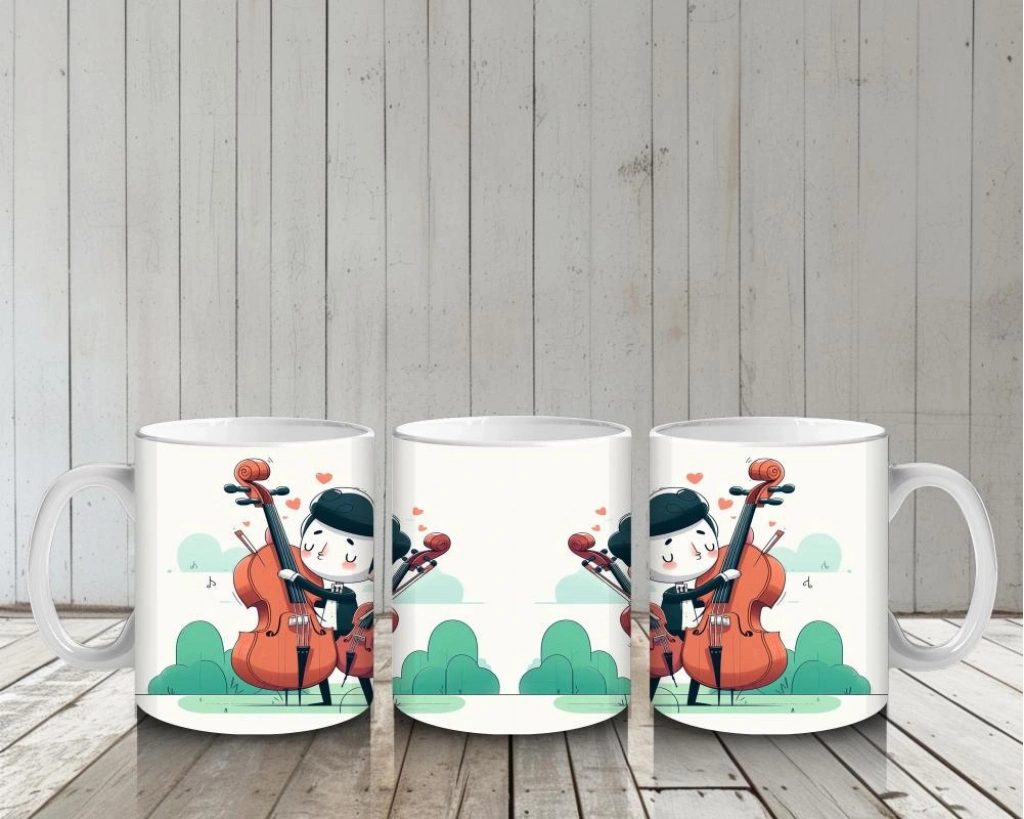 Çocuklara Sütü Sevdiren Viyolonsel Çalan Sevimli Müzisyen Desenli Kupa Bardak