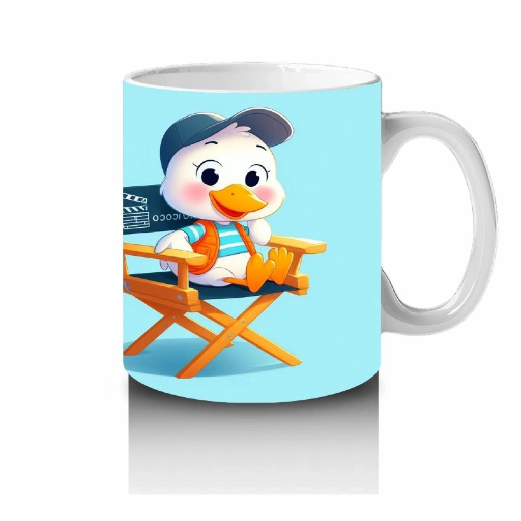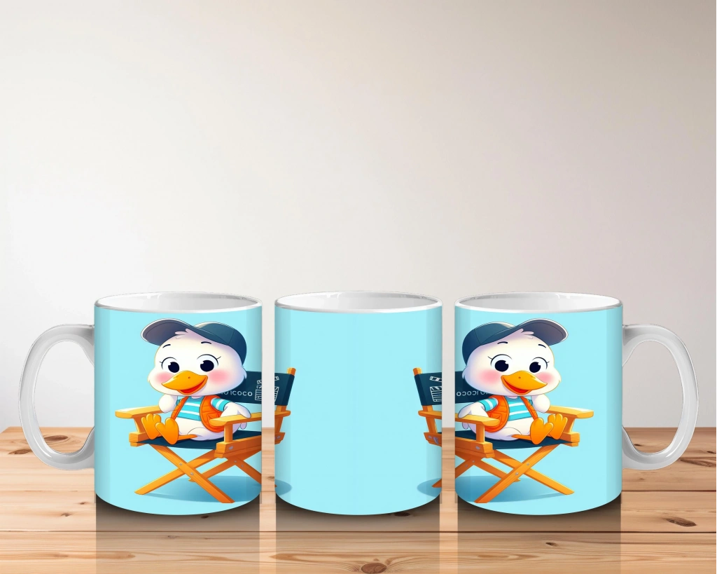 Çocuklara Sütü Sevdiren Yönetmen Sandalyesinde Oturan Sevimli Ördek Desenli Kupa Bardak