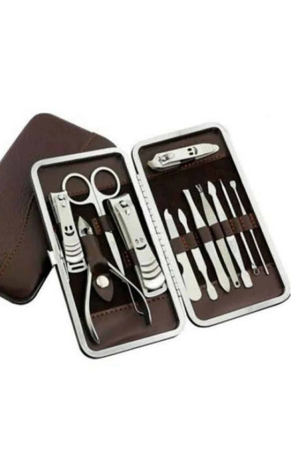 Özel deri çantalı, hepsi bir arada bakım seti ile kişisel bakımınızı dilediğiniz her yerde yapabilirsiniz. El ve ayak bakımınızı evde kolayca yaparak zaman ve maliyet tasarrufu sağlarken, paslanmaz çelikten üretilmiş dayanıklı aletlerle uzun ömürlü kullanım elde edersiniz. Taşınabilir boyutu sayesinde çantanızda rahatça taşıyabilir, seyahatlerinizde yanınızda bulundurabilirsiniz. Setin içinde kulak çekme aparatı, çok amaçlı makas, manikür makası, üç farklı tırnak makası/düzeltici, pense, kir temizleme aparatı, kaş cımbızı, manikür bıçağı, tırnak törpüsü ve akne iğnesi yer almaktadır. Şık ve kullanışlı tasarımıyla hem kişisel bakımınızı tamamlamanızı sağlar hem de hediye olarak tercih edebileceğiniz harika bir seçenektir.