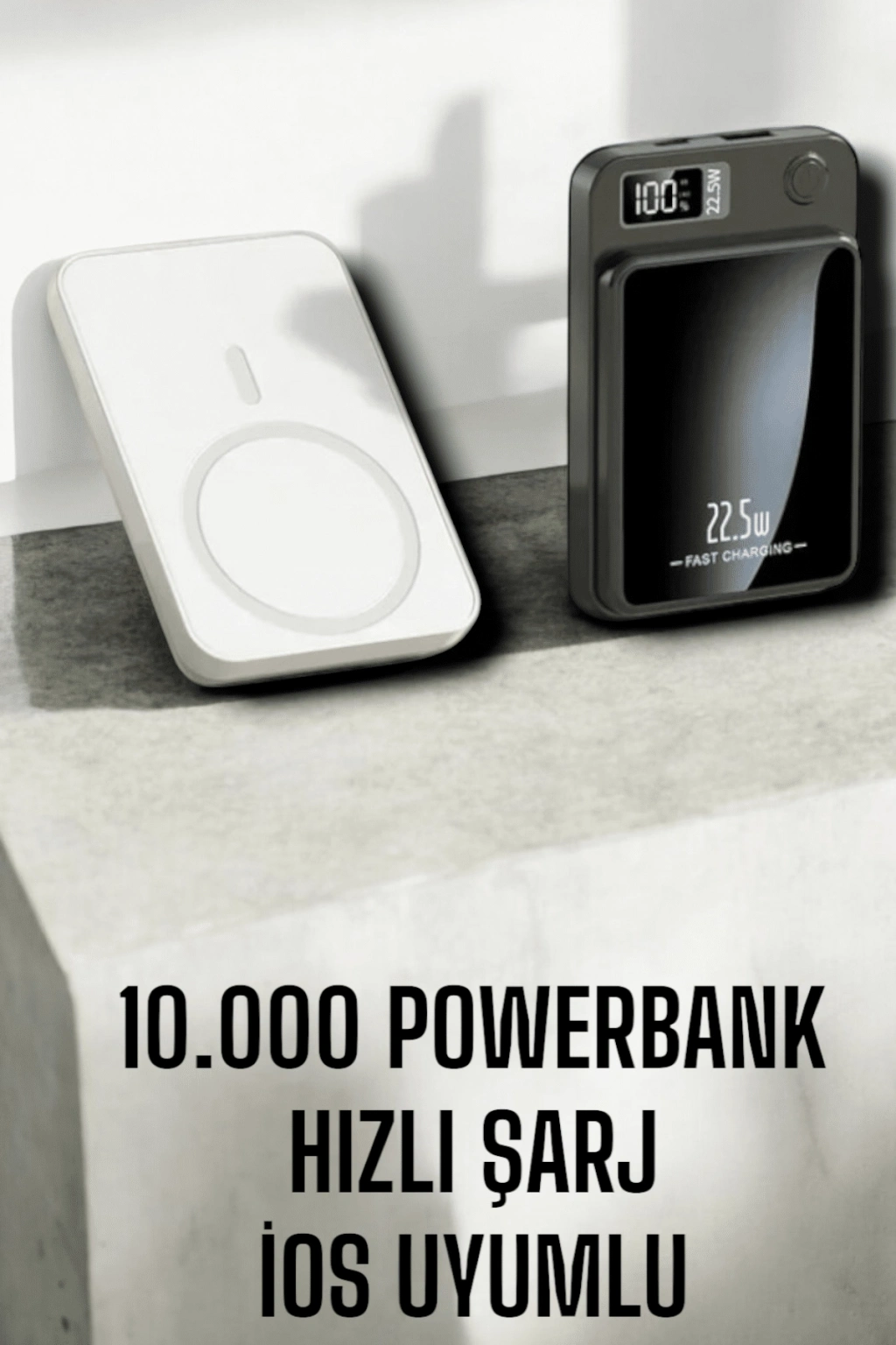 Her An Şarj, Her Yerde Güç!iOS uyumlu dijital göstergeli bu powerbank, 22.5W hızlı şarj kapasitesi ve 10.000 mAh bataryası ile telefonunuzu veya diğer cihazlarınızı şarj ederken sizi asla yarı yolda bırakmaz. Kablosuz Magsafe özelliği sayesinde kablo karmaşasından kurtulun. Minimal ve ergonomik tasarımı sayesinde seyahatlerinizde veya günlük yaşamınızda mükemmel bir yardımcıdır.