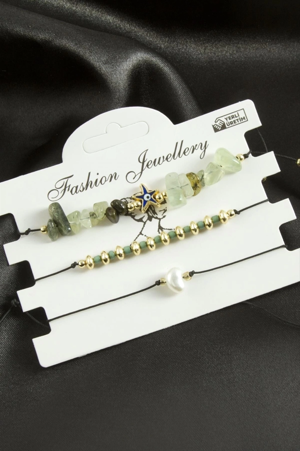 ÇOK SATAN 3 Adet Deniz Yıldız Mineli Kırık Doğaltaş Bileklik