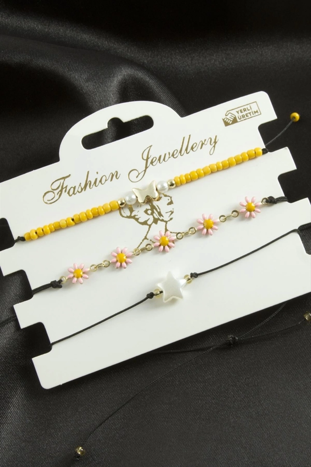 ÇOK SATAN 3 Adet Papatya Mineli Kum Boncuk Bileklik